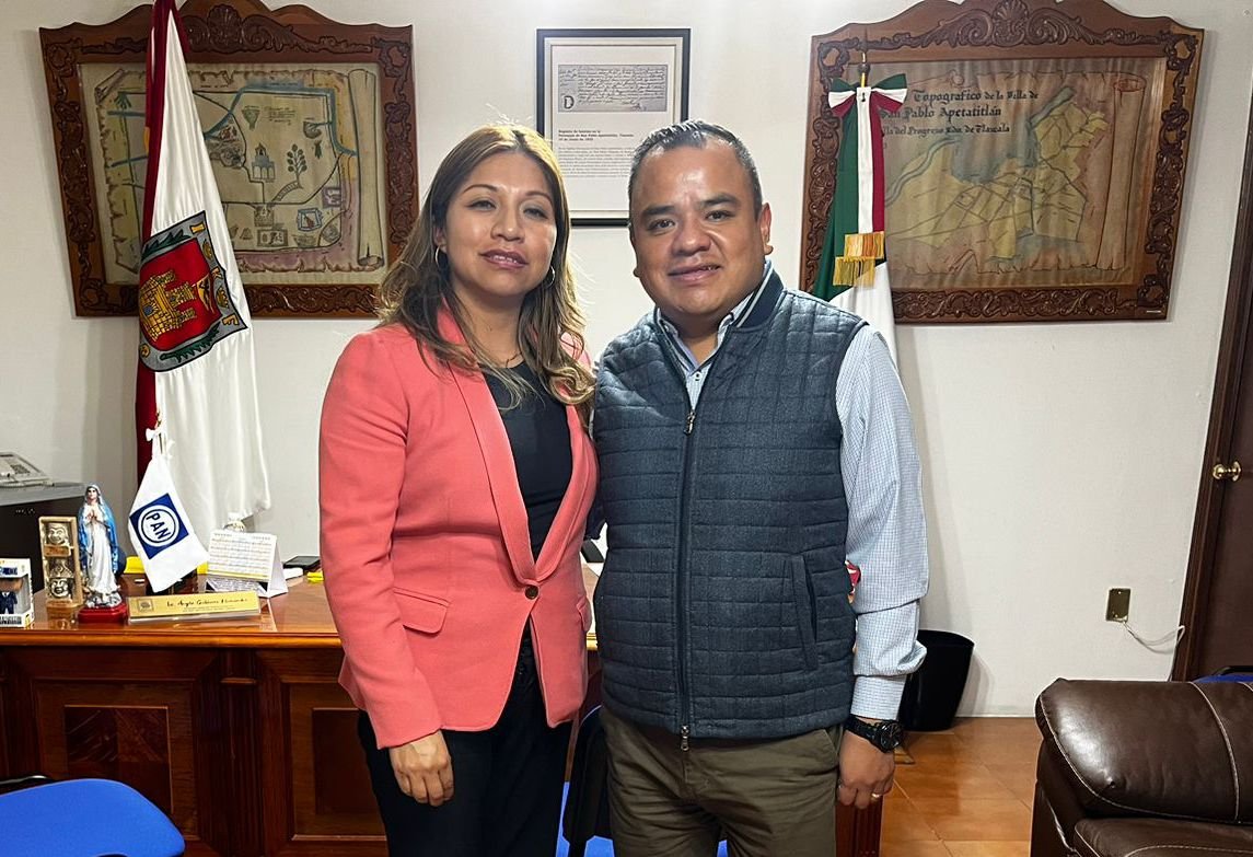 Tlaxcala, Tlax, a 13 de enero de 2024/Redacción/ El presidente municipal de Apetatitlán de Antonio Carvajal, Ángelo Gutiérrez Hernández sostuvo una reunión con la líder del sindicato “7 de mayo”, Karina Erazo Rodríguez, con la finalidad de sumar esfuerzos a efecto de dotar de mejores servicios y atención a la población.