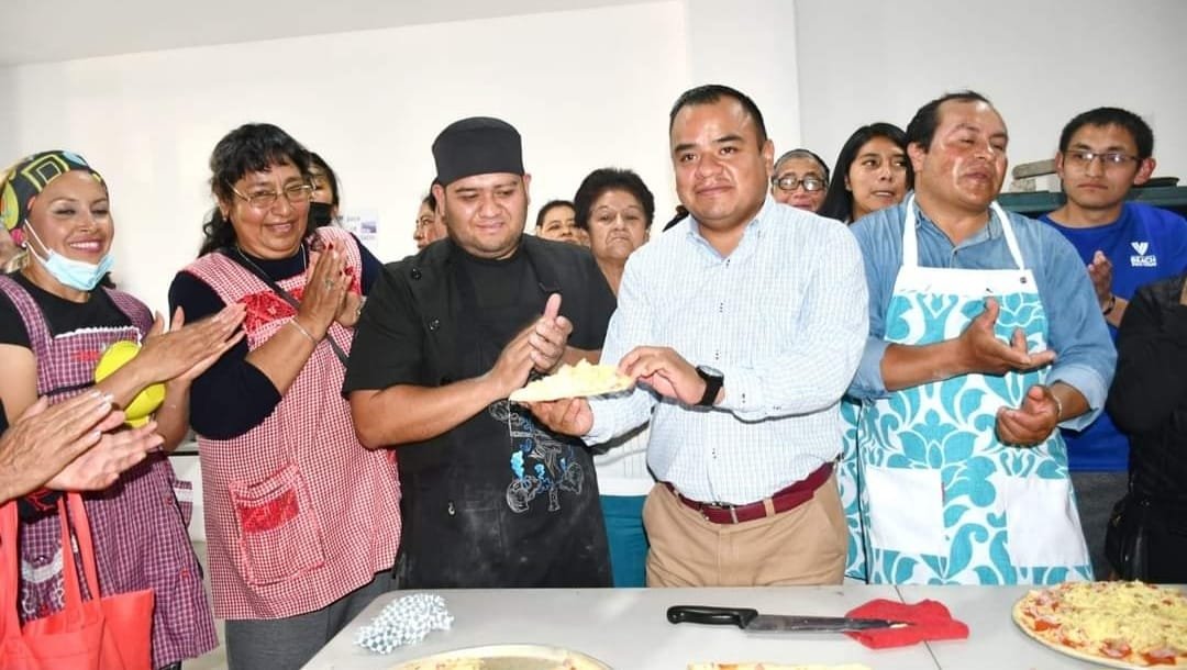 Cada martes, en las instalaciones del Sistema Municipal para el Desarrollo Integral de la Familia (DIF), se han dado cita, en donde con gran emoción y acompañados del presidente municipal Ángelo Gutiérrez, han aprendido las técnicas, procesos y secretos para la elaboración de platillos como pizza, hojaldras, lasaña boloñesa y lomo relleno al horno.