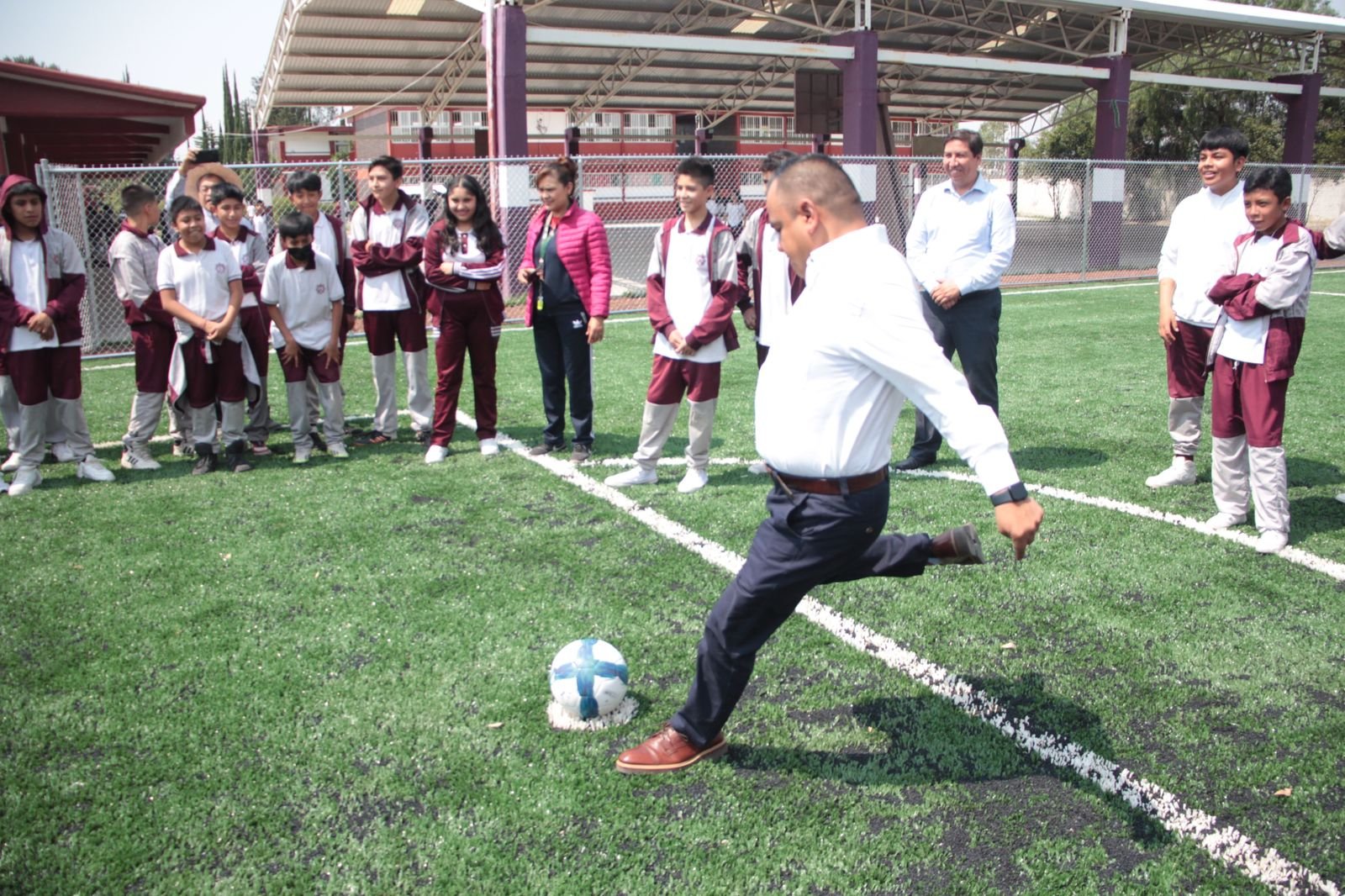 “Somos un gobierno que ha invertido de manera decidida en el desarrollo de nuestras infancias y qué mejor manera de hacerlo que en el deporte, como una forma que no solo lleva a la activación física, sino a la integración familiar y los buenos hábitos; vamos a seguir por este camino durante toda la administración”, dijo el edil ante maestros y alumnos de esta institución educativa