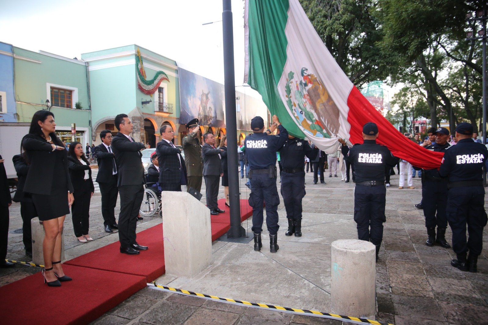 Tlaxcala, Tlax, a 2 de septiembre de 2024/JL Hertewing/ En el marco del CCXIV aniversario de la Independencia de México, el presidente municipal de Apetatitlán Ernesto Azain Ávalos Marban encabezo la tarde de este lunes el Arrio del Lábaro Patrio en la plaza de la Constitución de la capital del estado, donde señalo que debemos de sentirnos mexicanos ya que esto nos llena de una gran historia, tradiciones, cultura, gastronomía y algo que nos caracteriza que somos solidarios y de buen corazón, esto y mucho más pone en alto el nombre de México.