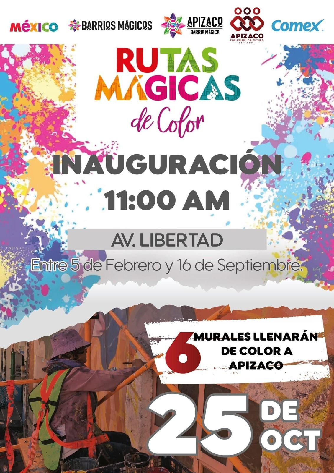 Esta actividad forma parte de la difusión de Apizaco como “Barrio Mágico”. El H. Ayuntamiento de Apizaco en colaboración con la Coordinación de Cultura del municipio darán inicio al recorrido de los murales elaborados por artistas locales y un invitado especial de la Patagonia Argentina, de la mano de pinturas Comex y vecinos del barrio antiguo de la ciudad rielera que fue la primera zona habitada por ferrocarrileros y comercios especializados para los trabajadores.