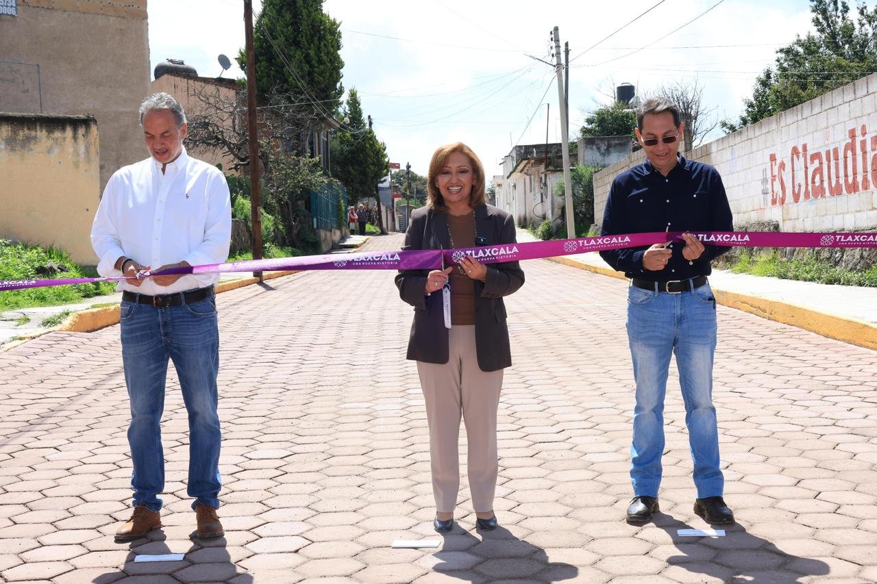 En Apizaco, en la comunidad de Texcalac, la mandataria entregó la construcción de guarniciones y pavimento con adoquín de las Calles Xicohténcatl e Hipódromo con una inversión superior a 2 millones de pesos, en beneficio de 7 mil 798 habitantes.