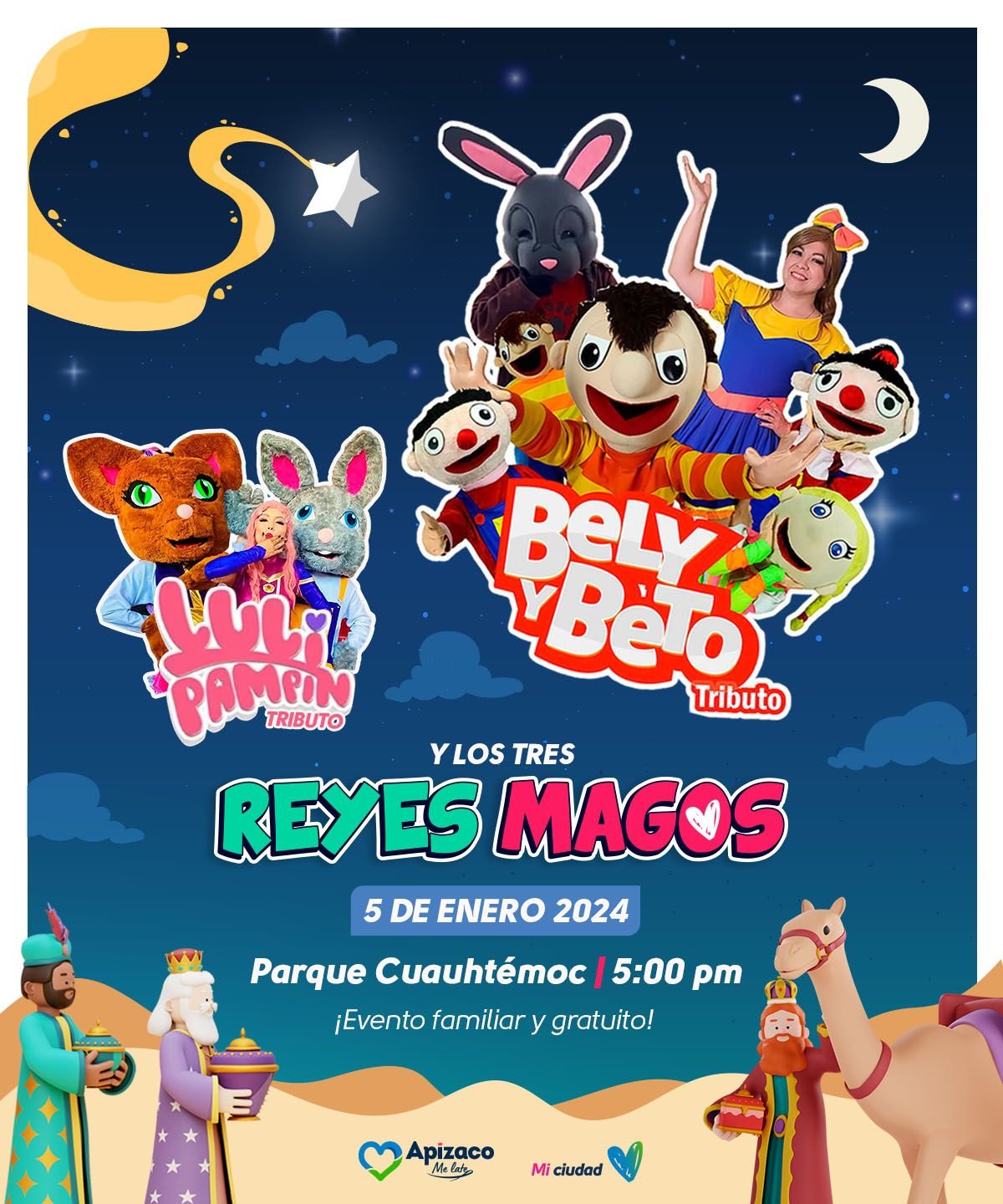 Melchor, Gaspar y Baltazar llegarán a las 5:00 pm al parque Cuauhtémoc y vendrán acompañados de Luli Pampin, así como de Bely y Beto: Pablo Badillo Sánchez alcalde.