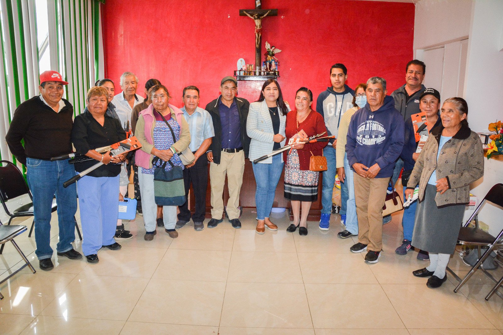 Tlaxcala, Tlax, a 8 de diciembre de 2023/Redacción/ El gobierno municipal de Santa Catarina Ayometla, que preside la C.P. Maribel Meza Guzmán, en compañía de los Regidores, Florencio Meza Meza, Enrique Barbosa Canales y Miguel Meza Cortes, realizó la entrega de 5 paquetes de herramientas al grupo de “Productores de Ayometla”, fruticultores ciudadanos diversificados que producen biodinámicamente variedad de frutas y verduras, con la finalidad de fortalecer y respaldar sus labores diarias en sus actividades empleadas al mejoramiento de sus cultivos.
