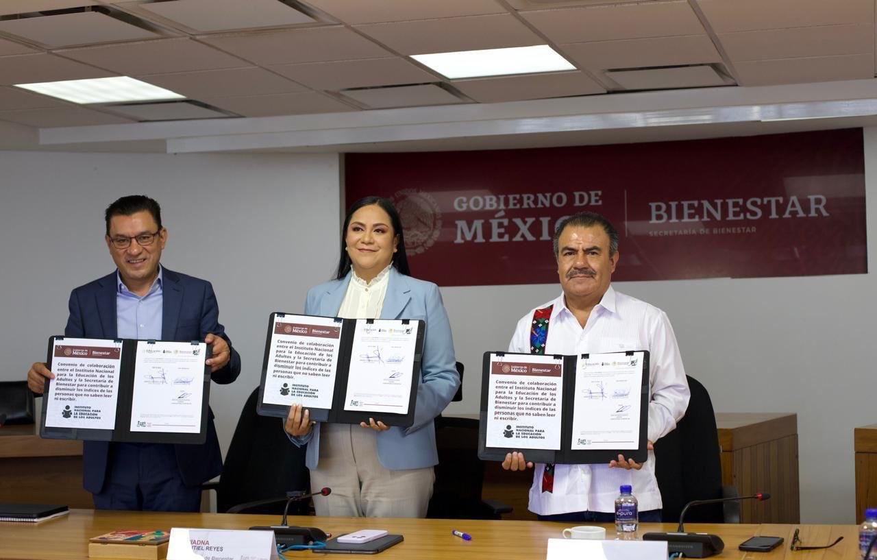 La Secretaría de Bienestar del Gobierno de México y el Instituto Nacional para la Educación de los Adultos (INEA), firmaron un convenio de colaboración para compartir información de adultos mayores y personas con discapacidad de 15 años o más que no saben leer ni escribir o no han concluido su educación primaria o secundaria con el objetivo de alfabetizarlos.