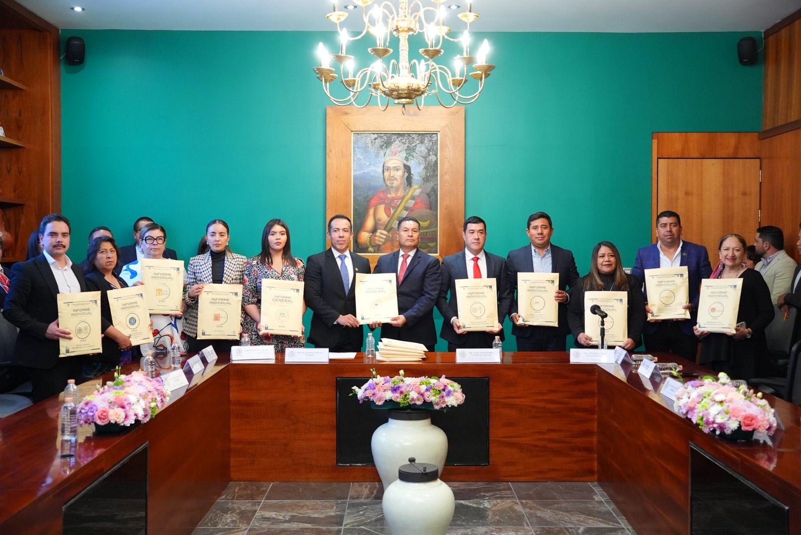Este martes, las y los diputados de la LXV Legislatura del Congreso del Estado de Tlaxcala recibieron los 108 informes individuales y el informe general de la Cuenta Pública 2024, presentados por el Órgano de Fiscalización Superior del Estado (OFS). La entrega incluye la revisión del periodo del 1 de enero al 31 de diciembre de 2024 para entes estatales, y del 1 de julio al 31 de diciembre para los municipios y el Congreso local.