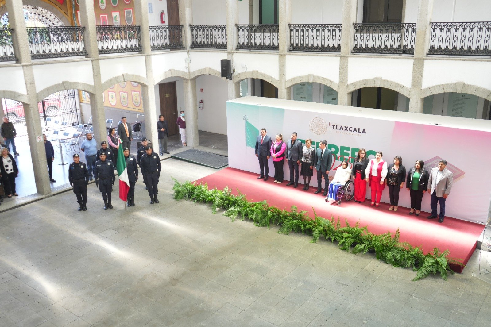 Este 24 de febrero, diputadas y diputados de la LXV Legislatura conmemoraron el Día de la Bandera con una ceremonia cívica realizada en el Patio Vitral del Congreso del Estado, en la que también participó el personal del recinto legislativo.