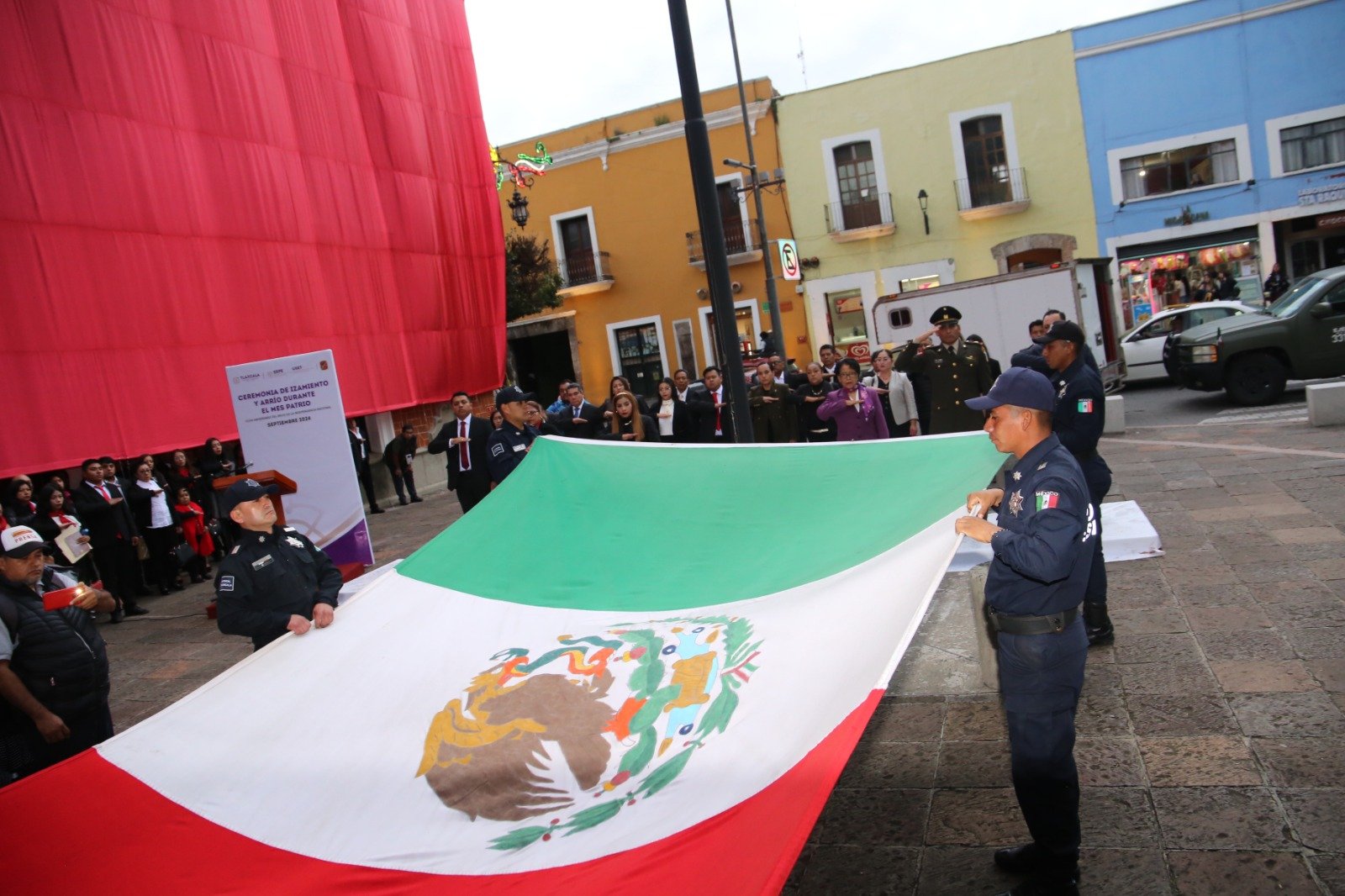 Tlaxcala, Tlax, a 5 de septiembre de 2024/JL Hertewing/ La presidenta municipal de Contla de Juan Cuamatzi Ivonne Roldán Xolocotzi, encabezo el Arrío del Lábaro Patrio en la plaza de la Constitución de la capital del estado, hecho que enmarca los 214 años de la Independencia de México, en su mensaje la alcaldesa señalo es un momento histórico que marca el nacimiento de nuestra nación como un país libre y soberano, esta fecha es un legado de aquellos hombres y mujeres que lucharon incasablemente para darnos patria y libertad.
