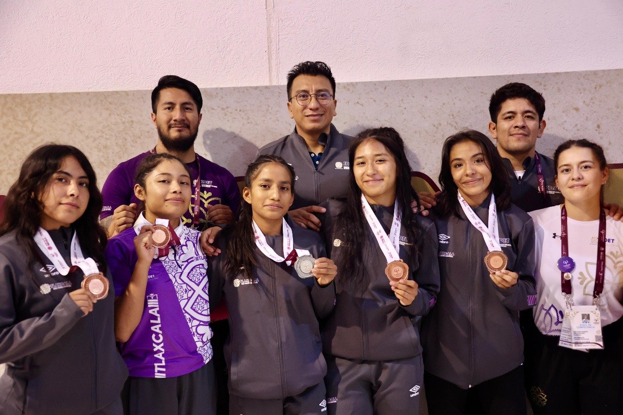 Tlaxcala continúa destacando en la Olimpiada Nacional CONADE 2025, sumando tres nuevas medallas en la disciplina de luchas asociadas, estilo femenil, fase 4, gracias a la destacada participación de las atletas Amairani Potrero, Fernanda López y Renata Tezmol.