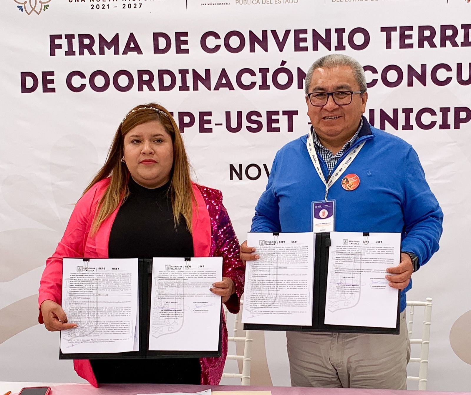 Tlaxcala, Tlax,  a 22 de noviembre de 2024/Redacción/ El gobierno municipal de Santa Isabel Xiloxoxtla que encabeza la alcaldesa Yazmín Jiménez Rugerio y el Secretario de Educación Pública en el Estado de Tlaxcala (SEPE) Homero Meneses Hernández, signaron convenio “Territorial de Coordinación y Concurrencia” el cual tiene el objetivo que el municipio fortalezca e impulse las actividades educativas, por lo que se pidió a los integrantes del cabildo, como padres de familia conocer el sistema educativo de la nueva escuela mexicana y así apoyar a las diferentes instituciones educativas que hay en esta entidad, en un esfuerzo conjunto para impulsar el desarrollo educativo de la comunidad.