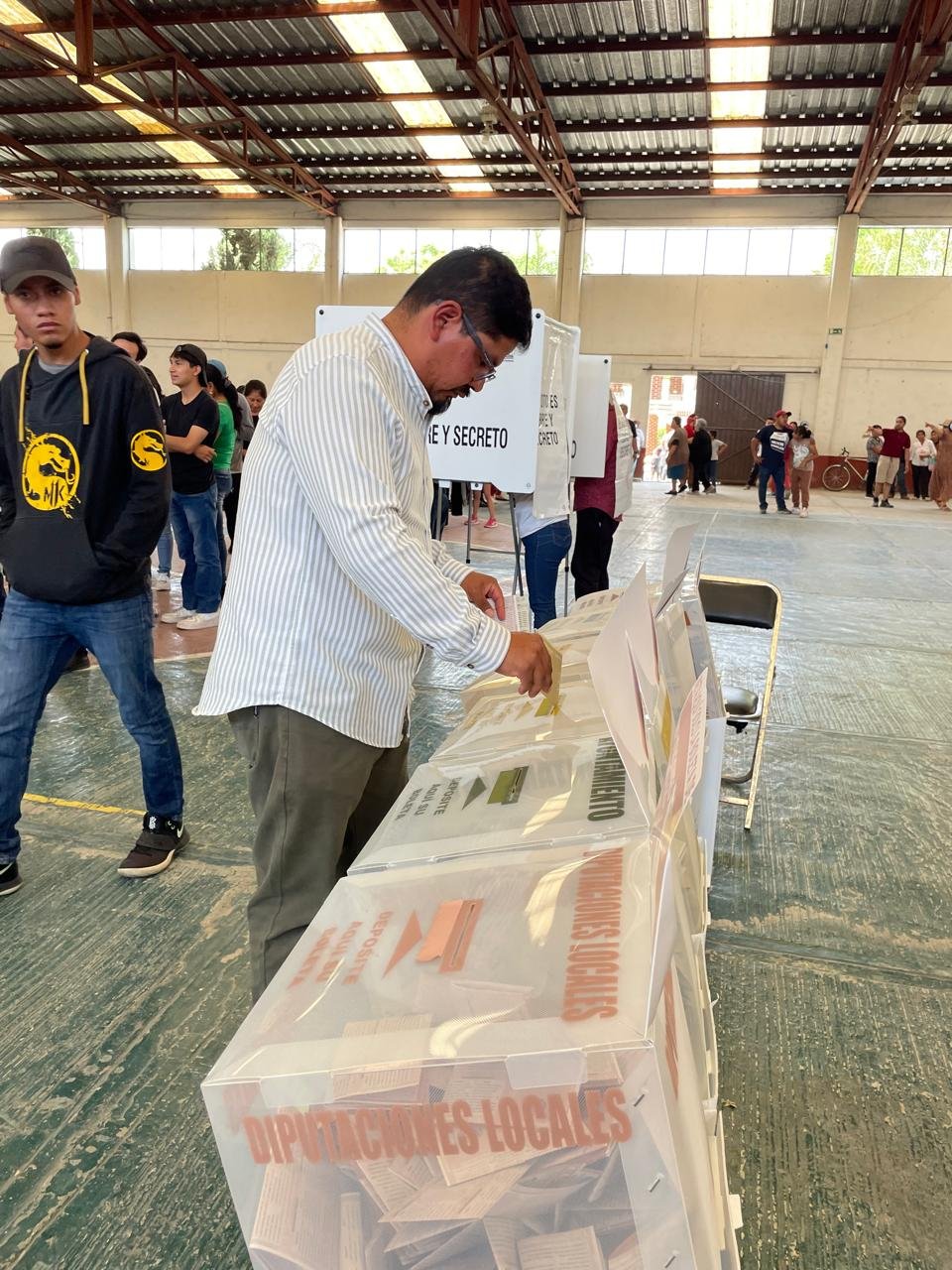 Tlaxcala, Tlax, a 2 de junio de 2024/JL Hertewing/ Como todo buen ciudadano el candidato a la presidencia municipal de Ixtacuixtla, por el partido Verde Víctor Hernández Durán acudió acompañado de su familia acudió a la casilla 251 de la comunidad de San Diego Xocoyucan a sufragar su voto, donde dijo el día tan esperado para cambiar el rumbo de las comunidades y de la cabecera municipal, es hoy “nuestro voto tiene la fuerza para hacer realidad ese anhelado cambio”.