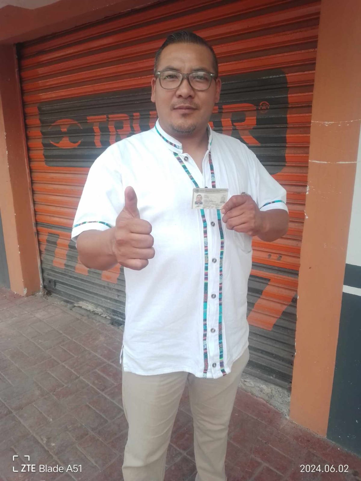 Tlaxcala, Tlax, a 2 de junio de 2024/JL Hertewing/ La tarde de este domingo 2 de junio el candidato a la presidencia de comunidad de San Miguel Tlamahuco del municipio de Totolac, por el Partido Alianza Ciudadana (PAC) Jonatthan Flores acudió a la casilla 514 de dicha comunidad, como todo ciudadano se formó en la fila que le tocaba donde emitió su sufragio y señalo lo mejor para esta comuna está por llegar.