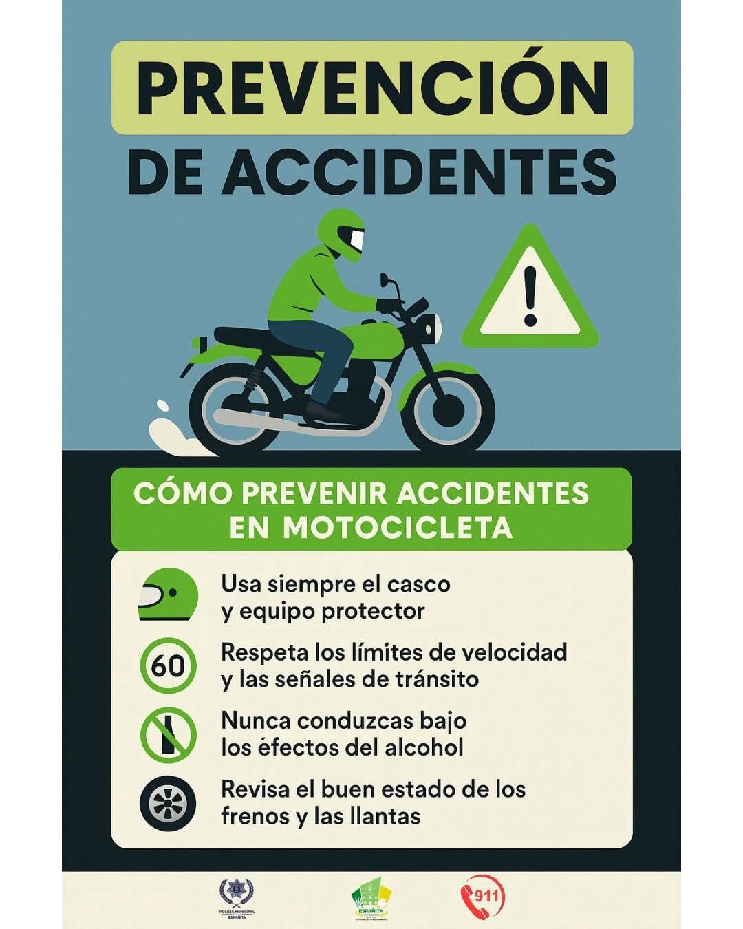 Tlaxcala, Tlax, a 28de julio de 2025/Redacción/ El gobierno municipal de Españita que encabeza el alcalde Juan Carlos Galindo López, a través de la Dirección de Seguridad Pública, invita a todos los ciudadanos a conducir con responsabilidad y seguir estas recomendaciones clave para evitar accidentes:
