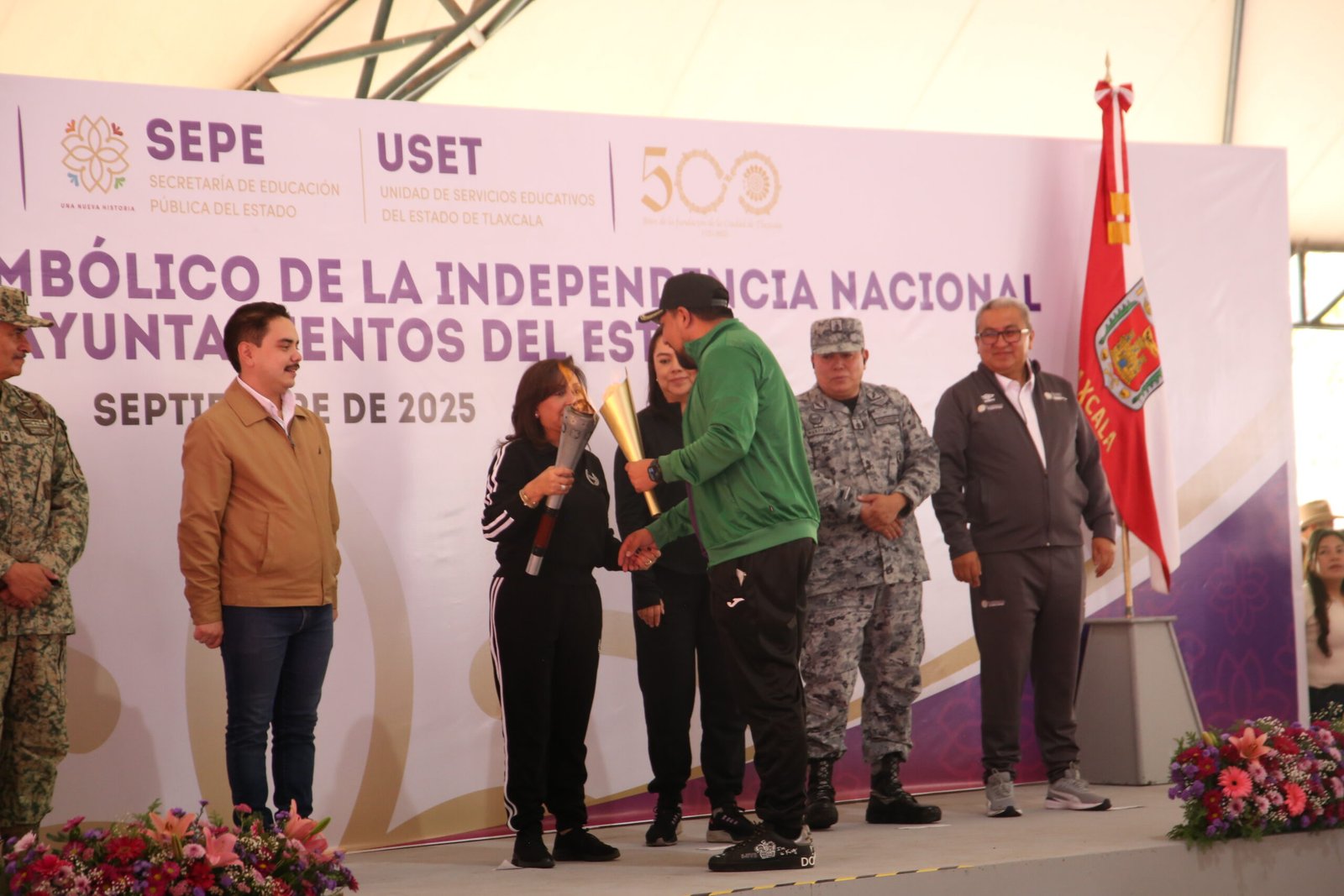 Tlaxcala, Tlax, a 15 de septiembre de 2025/Redacción/ En el marco del CCXV Aniversario de la Independencia de México, el gobierno municipal de Españita que encabeza el alcalde Juan Carlos Galindo López, asistió al domo blanco de la capital del estado donde la gobernadora del estado Lorena Cuéllar Cisneros, entregó el fuego simbólico de Independencia Nacional a los 60 Ayuntamientos del estado, el cual representa la memoria de los actos heroicos durante la lucha para consolidar a México como una nación independiente.