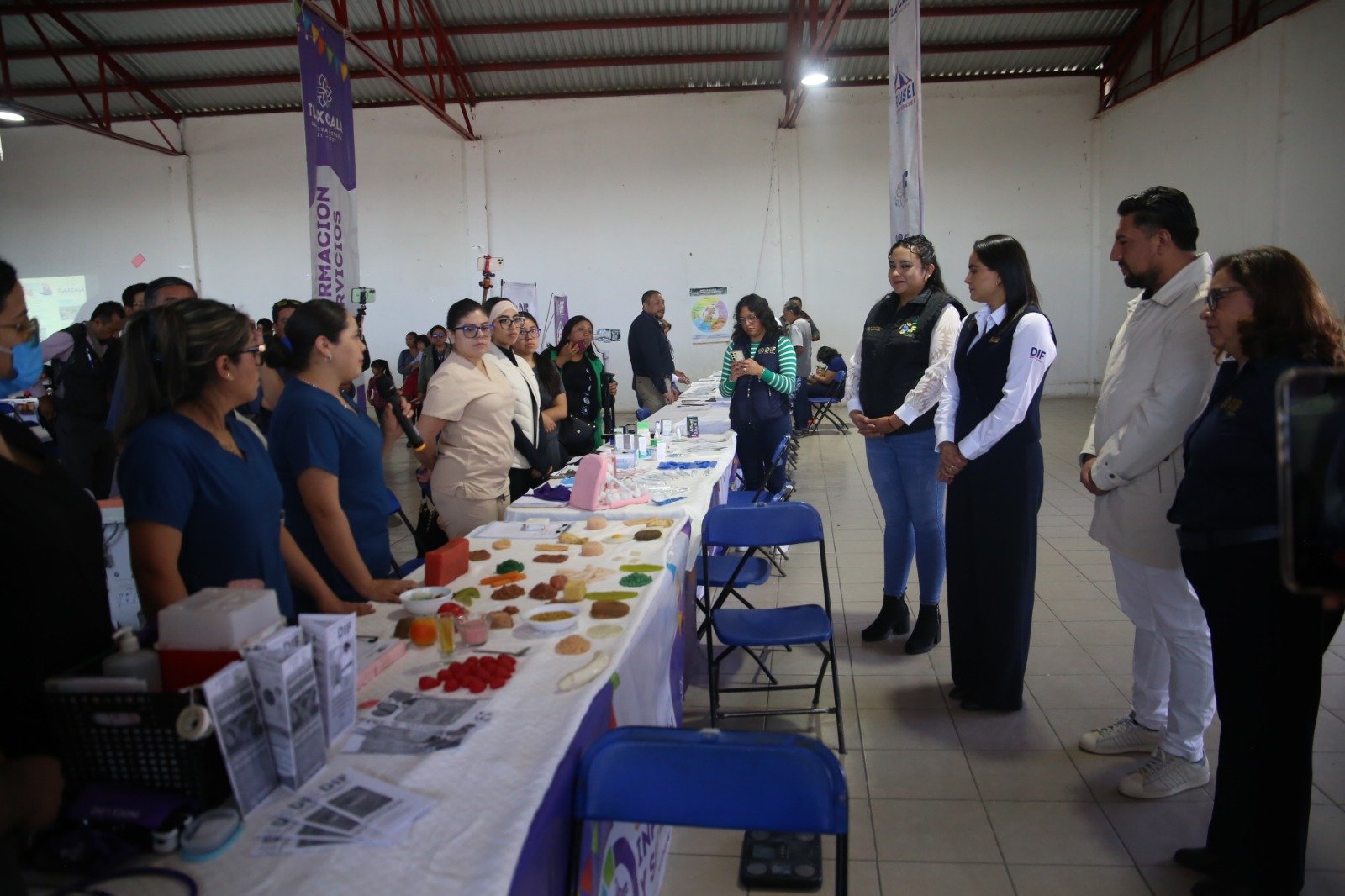 Galindo López comento hoy tenemos aquí en el auditorio municipal más de dependencias estatales y federales como el ICATLAX, INE, LICONSA, Secretaria de Bienestar, SIA Registro Civil, el SOTyV (con vivienda digna para tu bienestar), el SAT, por mencionar algunos, resalto.
