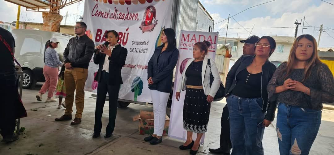 Tlaxcala, Tlax, a 11 de febrero de 2025/Redacción/ La diputada Local Madai Pérez Carrillo, acompañada de la presidenta honorifica del Sistema Municipal para el Desarrollo Integral de la Familia (SMDIF) que dirige Claudia Erika Huitzil López quien asistió en representación del alcalde Juan Carlos Galindo López, pusieron en marcha el “mercado a bajo costo en el municipio de Españita, donde la legisladora señalo a través de este mercado fortalecemos la economía de los que menos tienen.
