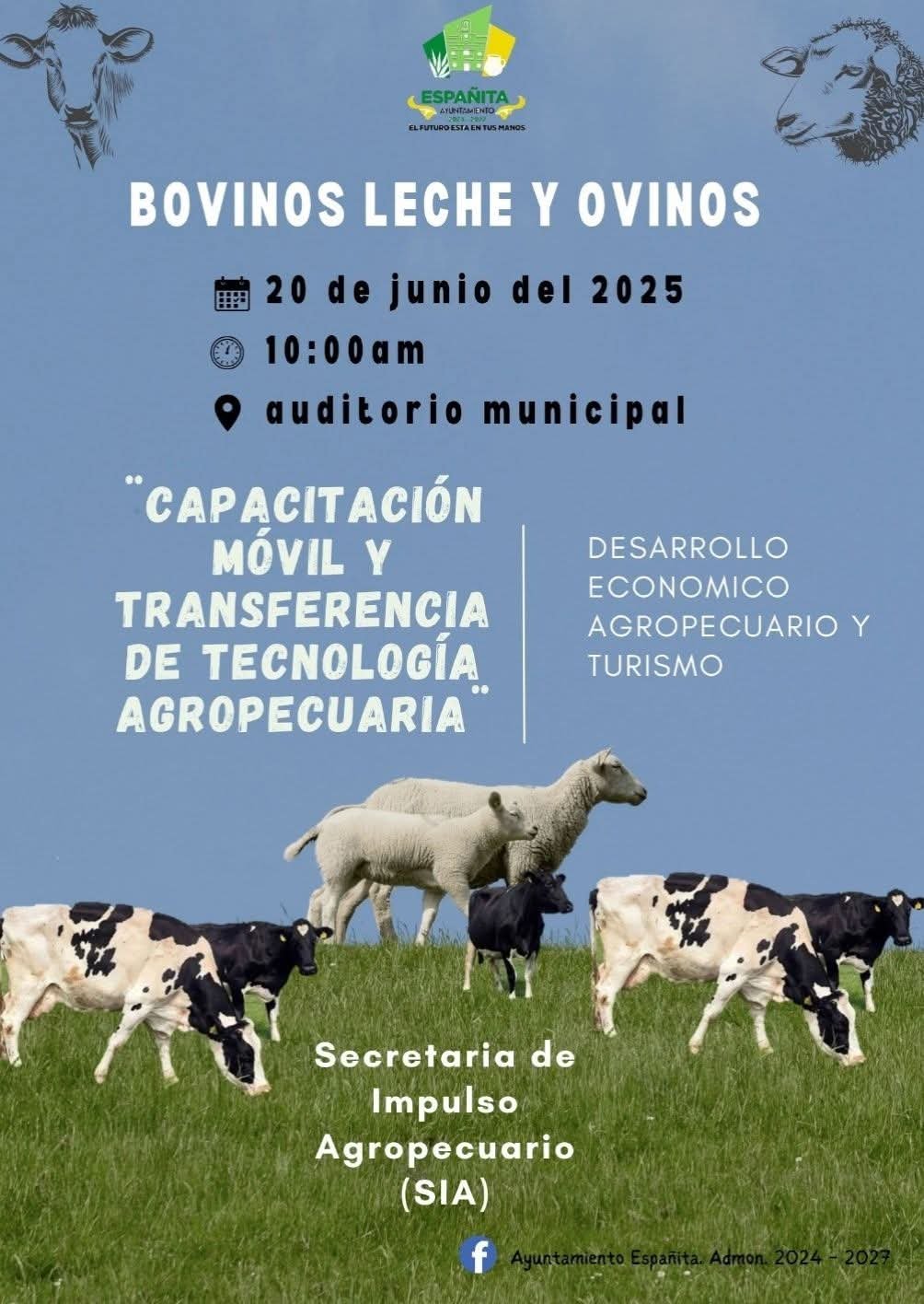 Tlaxcala, Tlax, a 15 de junio de 2025/Redacción/ El gobierno municipal de Españita que encabeza el alcalde Juan Carlos Galindo López, en coordinación con Desarrollo Económico, Agropecuario y Turismo, del municipio y a través de la Secretaria de Impulso Agropecuario (SIA), dieron a conocer a los ciudadanos la capacitación móvil de transparencia de tecnología agropecuaria que será el día 20 de junio en el auditorio municipal, en punto de las 10:00am.