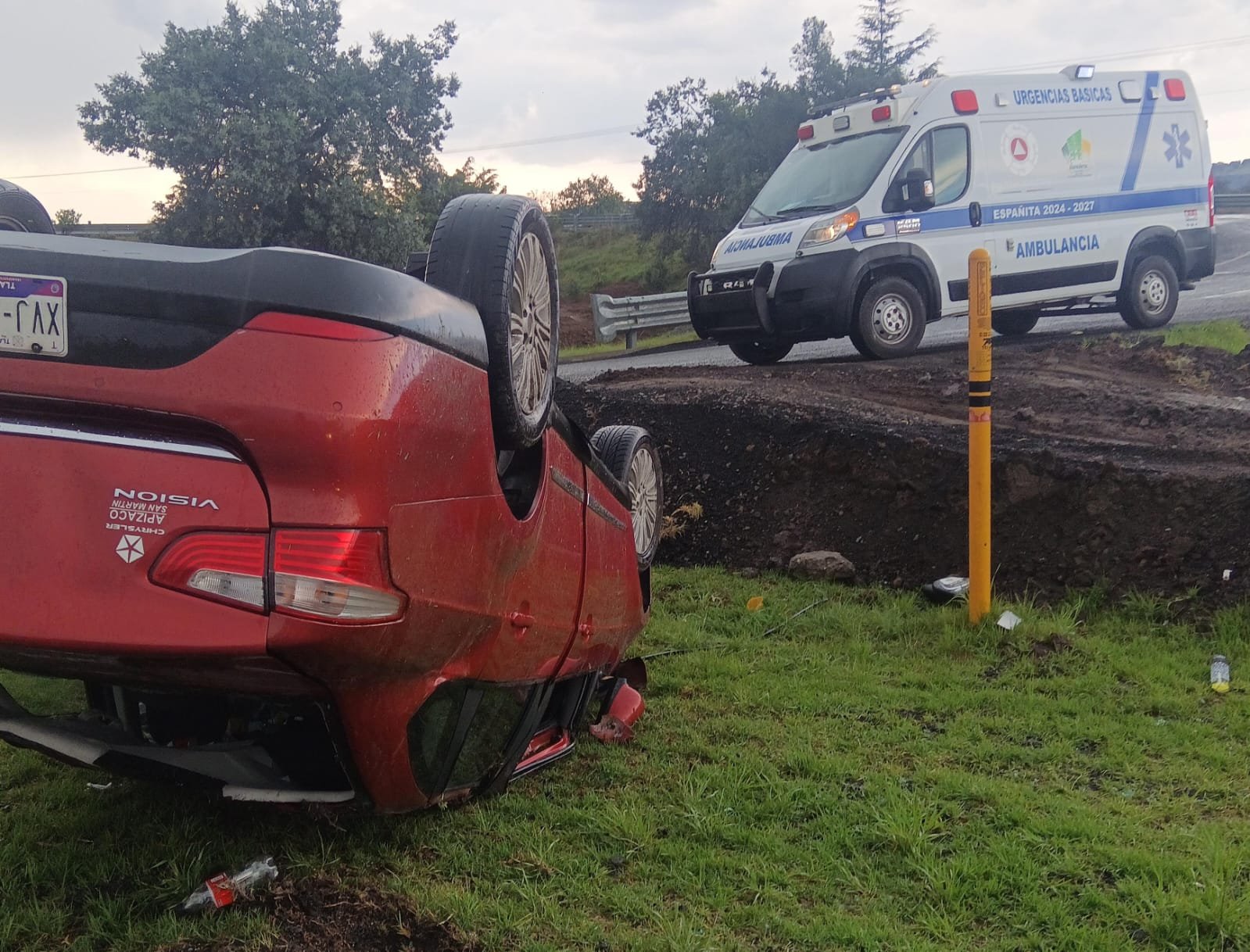 Al parecer una falla mecánica en un neumático ocasiono que un automóvil compacto se volcara sobre la carretera federal Apizaco-Calpulalpan el conductor resultara lesionado que fue atendido por paramédicos del municipio.