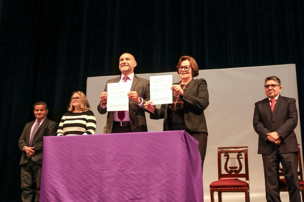 Además, se firmó el acuerdo para inducir la perspectiva de género con la directora del Proyecto Mejorar la Igualdad Sustantiva de Género en el lugar de trabajo en México (GEM), Alma Clarisa Rico Díaz.