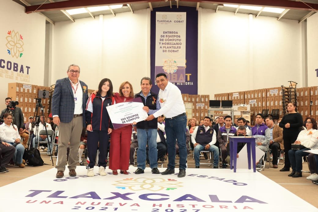 La gobernadora del estado, Lorena Cuéllar Cisneros, hizo realidad la entrega de equipo de cómputo y mobiliario para beneficiar a 14 mil 749 alumnos y docentes de los 24 planteles de Colegio de Bachilleres del Estado de Tlaxcala (Cobat), con el objetivo de brindarles las herramientas necesarias para mejorar su calidad educativa después de 13 años sin actualizarse.