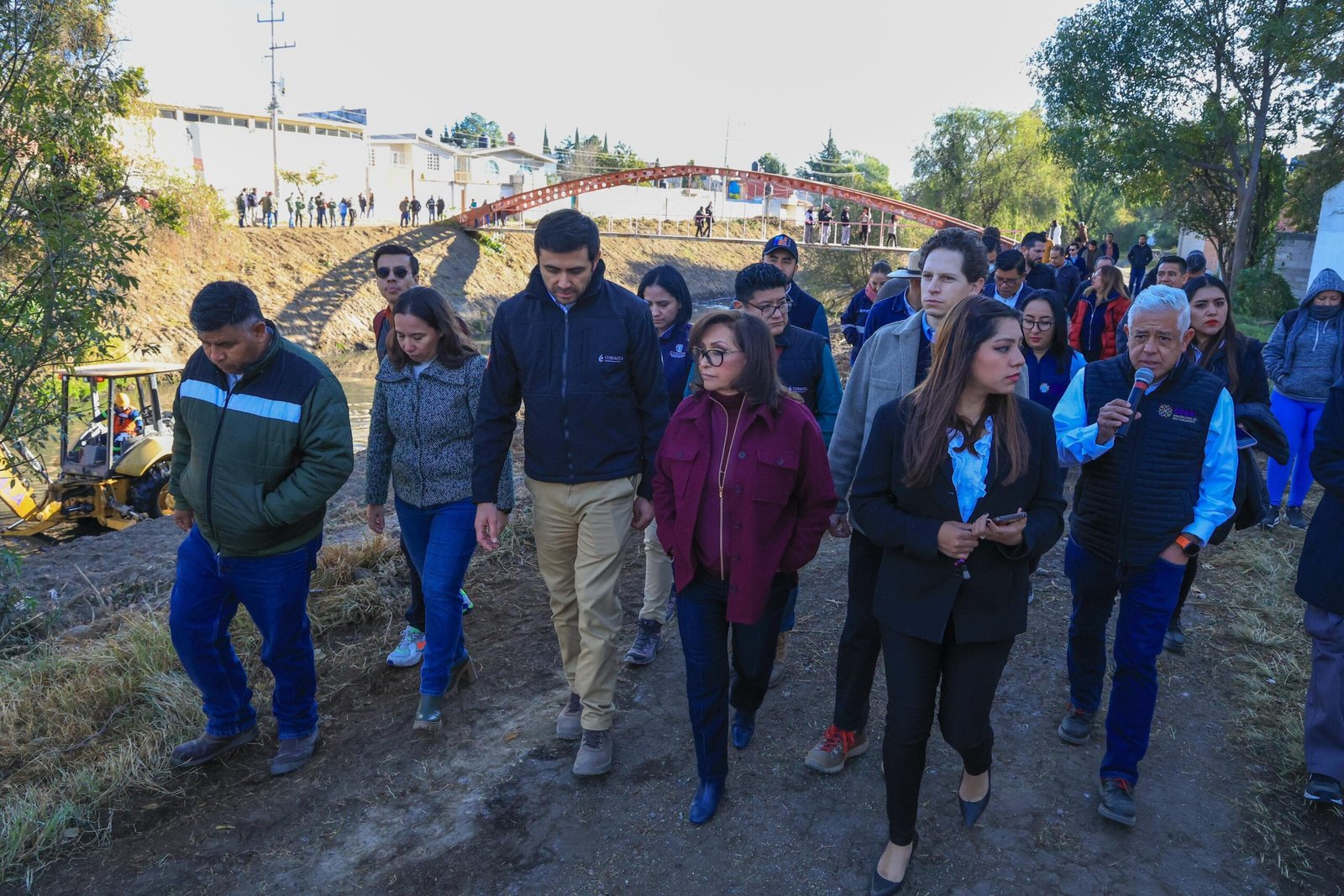 La gobernadora Lorena Cuéllar Cisneros encabezó un recorrido por los márgenes del río Zahuapan, en el que participaron autoridades federales y estatales para verificar el estado que guarda este cuerpo de agua, con el objetivo de actualizar el diagnóstico integral de este afluente para implementar las acciones incluidas en los nueve proyectos del Plan de Restauración del Alto Atoyac, impulsados por la presidenta de México, Claudia Sheinbaum Pardo.