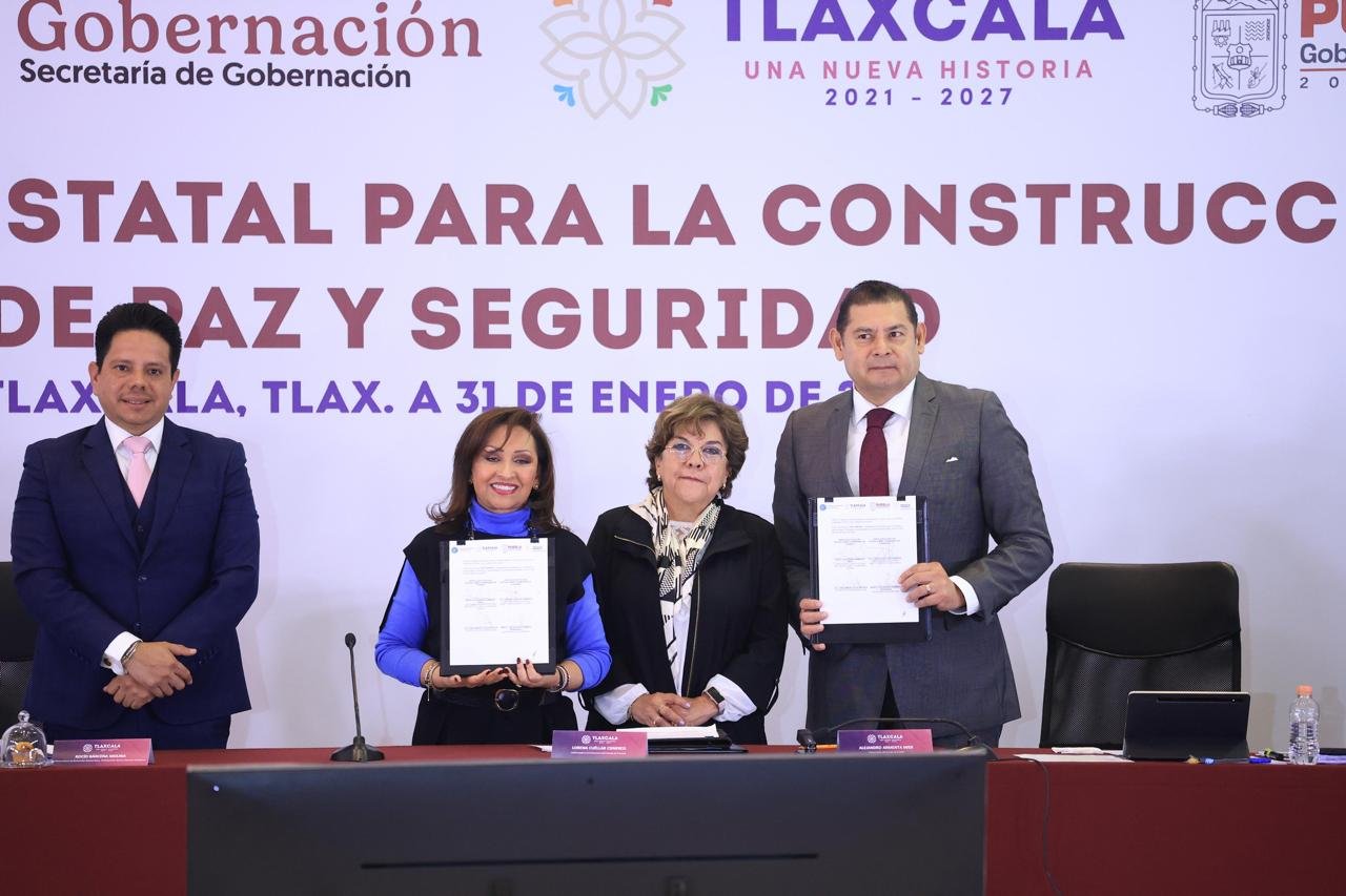 La gobernadora de Tlaxcala, Lorena Cuéllar Cisneros y el gobernador de Puebla, Alejandro Armenta Mier, firmaron esta mañana el Convenio Marco de Coordinación y Colaboración para el Desarrollo de Áreas y Temas Comunes, así como el Convenio Específico en Materia de Procuración de Justicia, Seguridad Pública y Ciudadana.