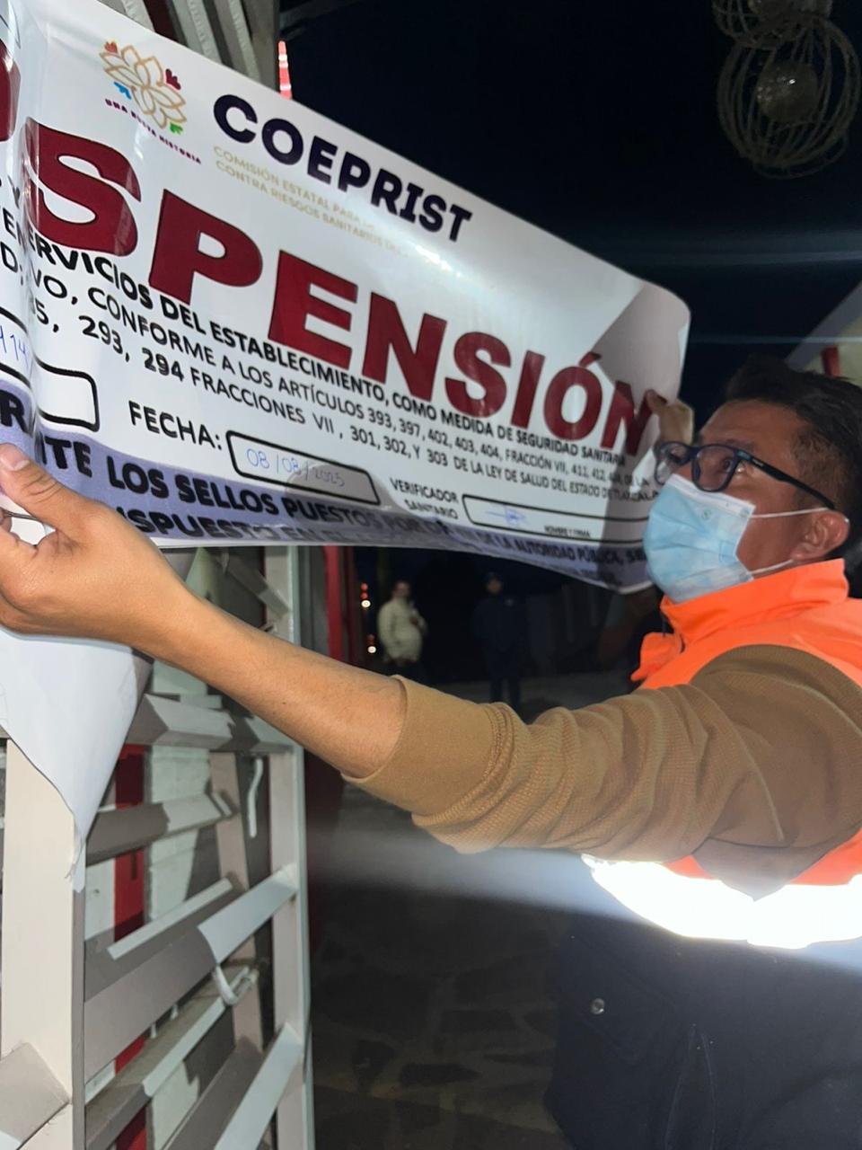 Como medida de seguridad, la Coeprist colocó sellos de suspensión temporal de trabajos y servicios en los accesos principales de cada establecimiento.