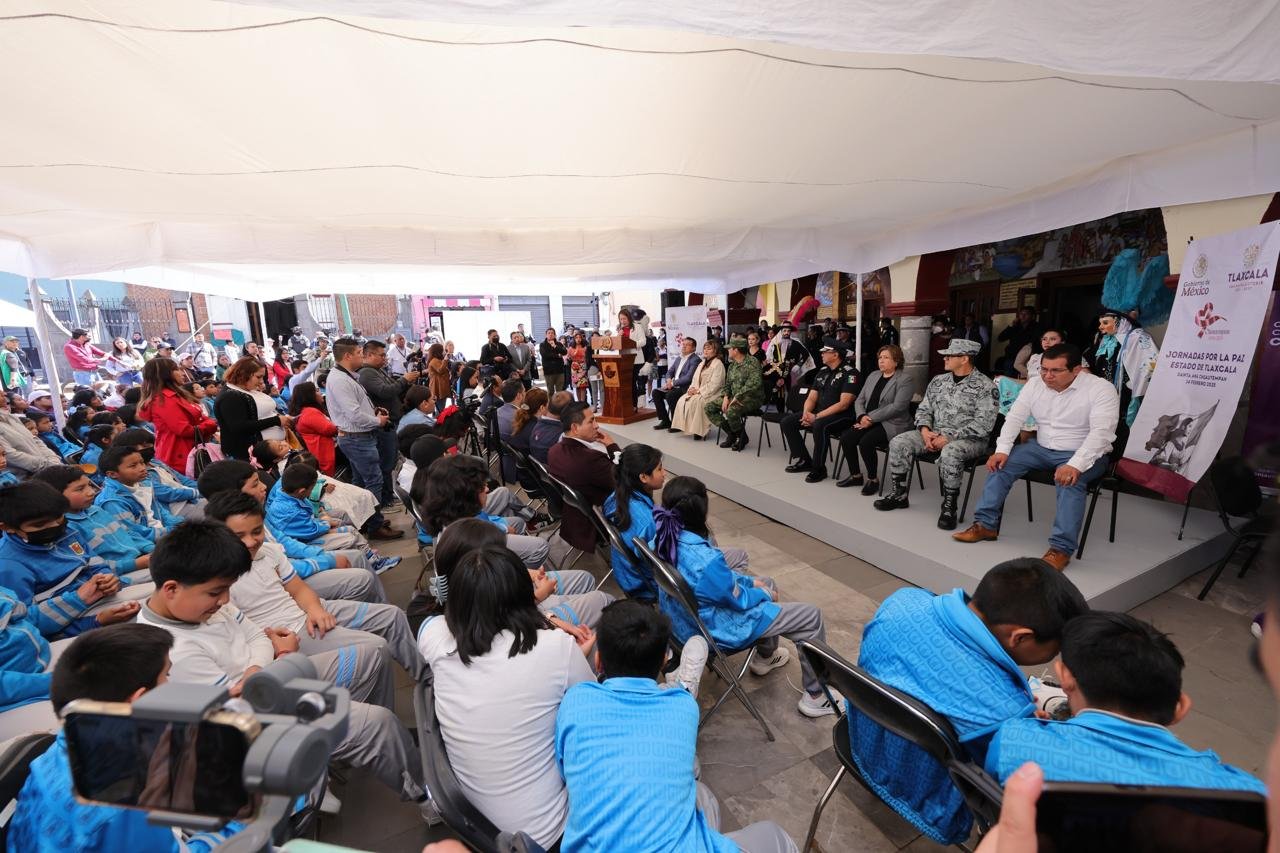 Este viernes comenzaron en Tlaxcala las Jornadas por la Paz, una de las estrategias nacionales de seguridad establecidas por la presidenta de México, Claudia Sheinbaum Pardo, con el objetivo de promover la cultura de la paz para mejorar las condiciones de vida de los habitantes, a través de acciones, servicios y programas en materia de salud, educación, trabajo y bienestar, entre otros.