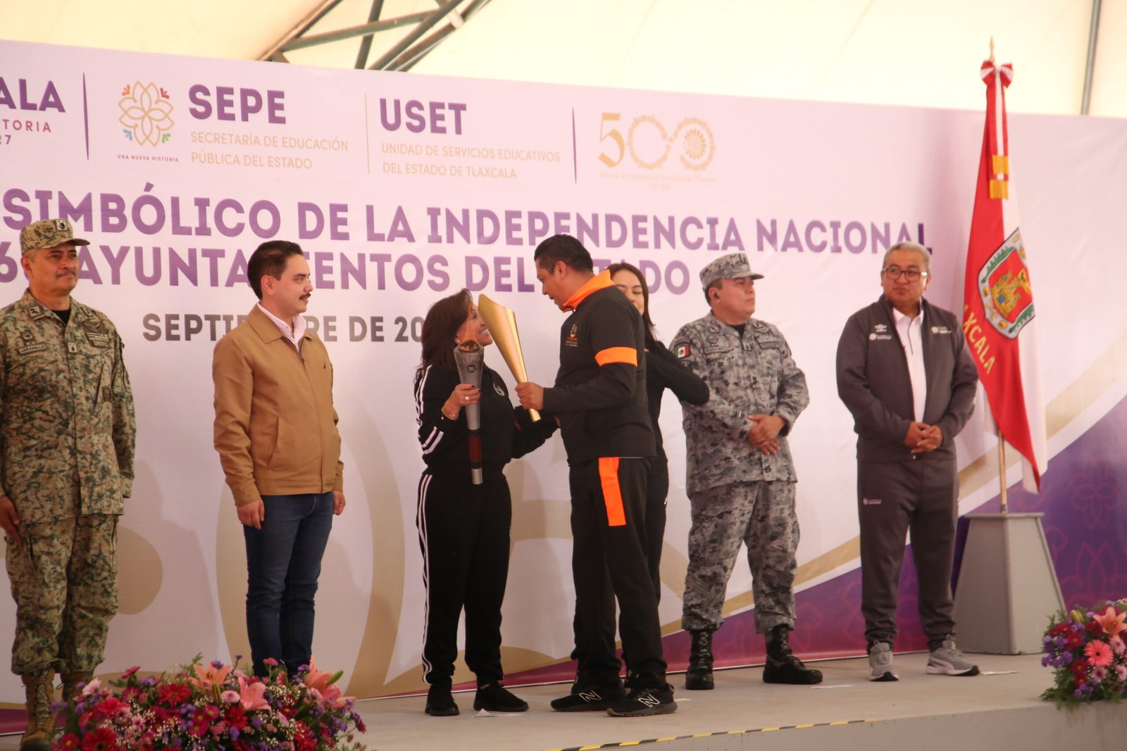 Tlaxcala, Tlax, a 15 de septiembre de 2025/Redacción/ En el marco del CCXV Aniversario de la Independencia de México, el gobierno municipal de Huactzinco que encabeza el alcalde Eberth Robles Ocotzi, asistió al domo blanco de la capital del estado donde la gobernadora del estado Lorena Cuéllar Cisneros, entregó el fuego simbólico de Independencia Nacional a los 60 Ayuntamientos del estado, el cual representa la memoria de los actos heroicos durante la lucha para consolidar a México como una nación independiente.