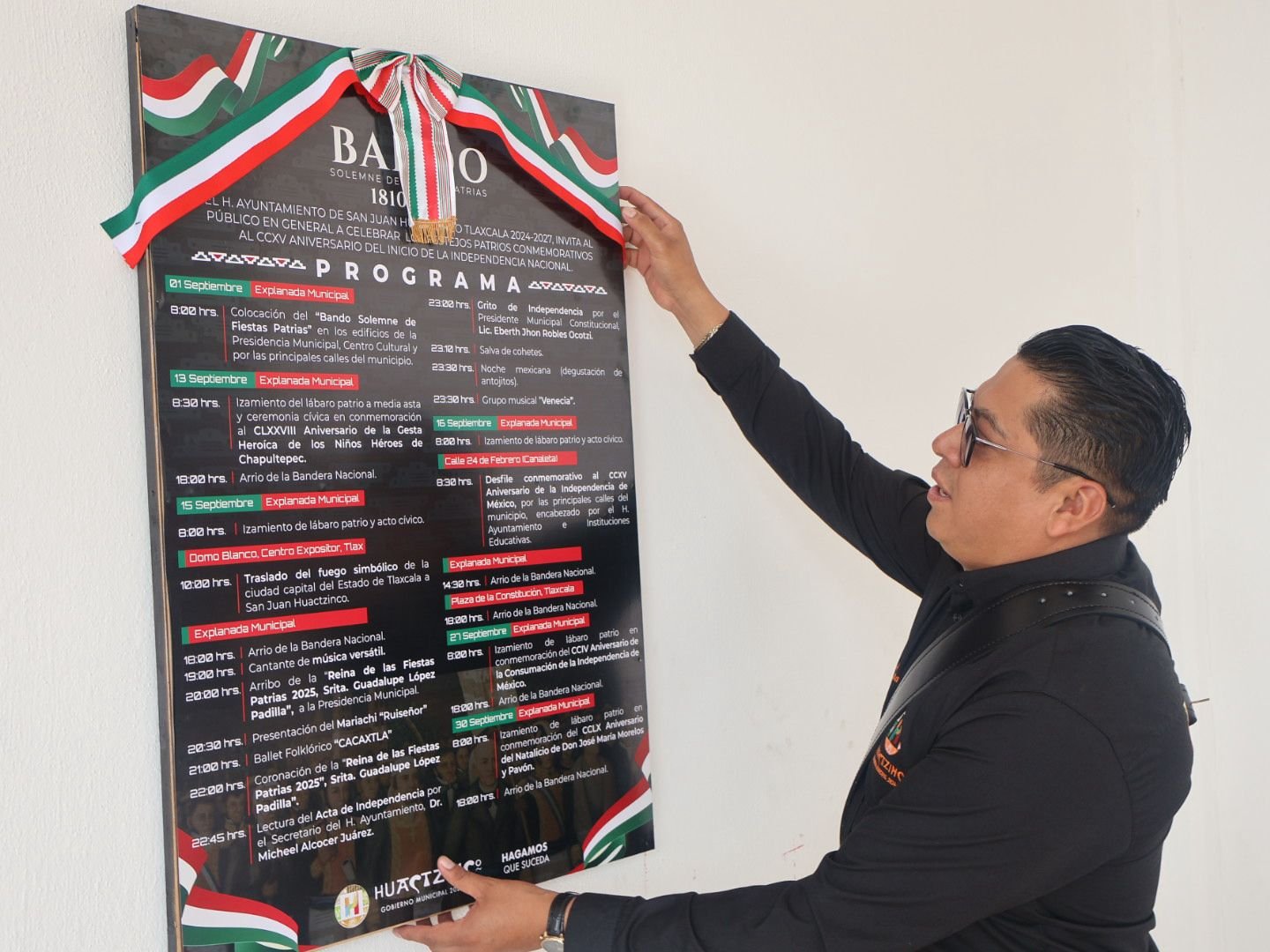 Tlaxcala, Tlax, a 1 de septiembre de 2025.- El presidente municipal de Huactzinco, Eberth Jhon Robles Ocotzi, impulsando las tradiciones del mes patrio llevó a cabo la pega del “Bando Solemne” por las diferentes calles del municipio, donde menciono el mes de septiembre es el más importante para los mexicanos ya que en el hombres y mujeres heroicas lucharon por una libertad que hoy gozamos