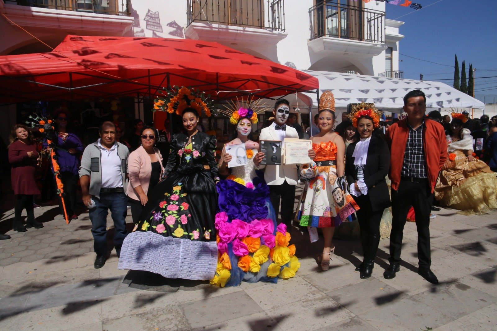 Los ganadores del 3er lugar fueron para la catrina Arleth Pérez Pintor y el catrín Mateo Pérez Coto, para el 2do lugar para la catrina Fátima Cortes Corvente.