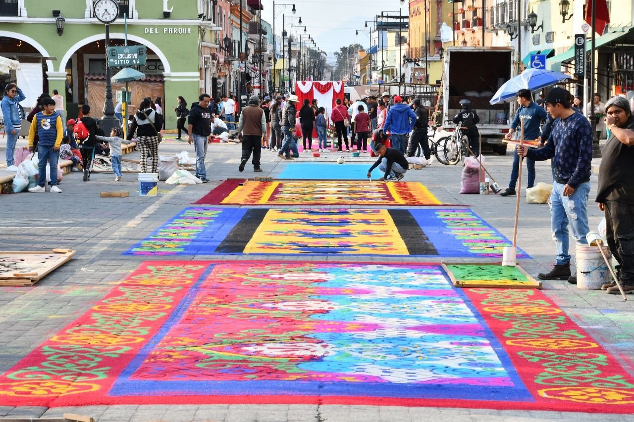 Esta tradición, que celebra el talento y la dedicación de los artesanos que crean estas efímeras obras elaboradas con flores, aserrín y otros materiales, además de que reflejan el espíritu artístico y el fervor religioso de Huamantla.