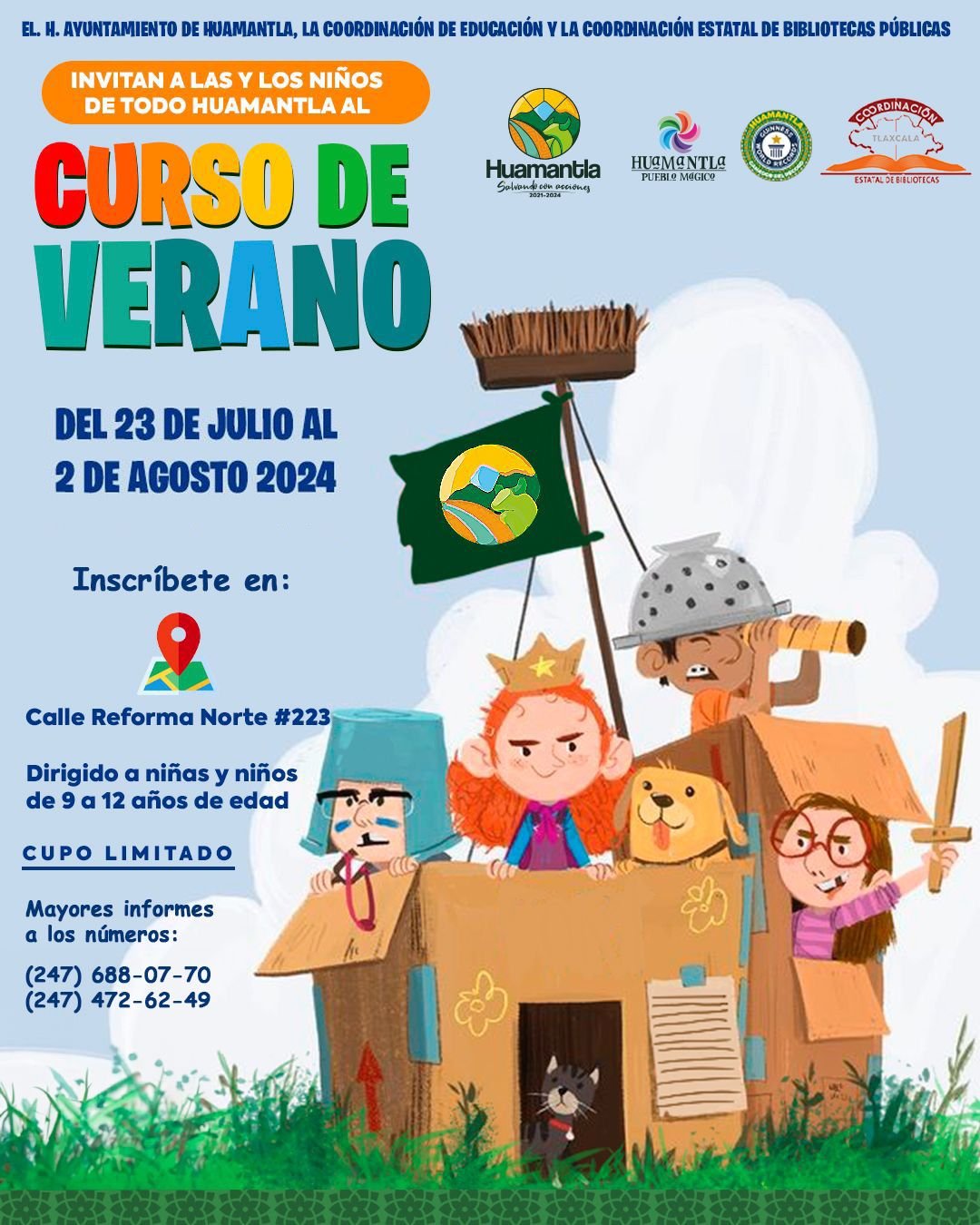 El H. Ayuntamiento de Huamantla, a través de la Coordinación de Educación y en colaboración con la Coordinación Estatal de Bibliotecas Públicas, invita a ser parte del Curso de Verano Infantil que será totalmente gratuito.