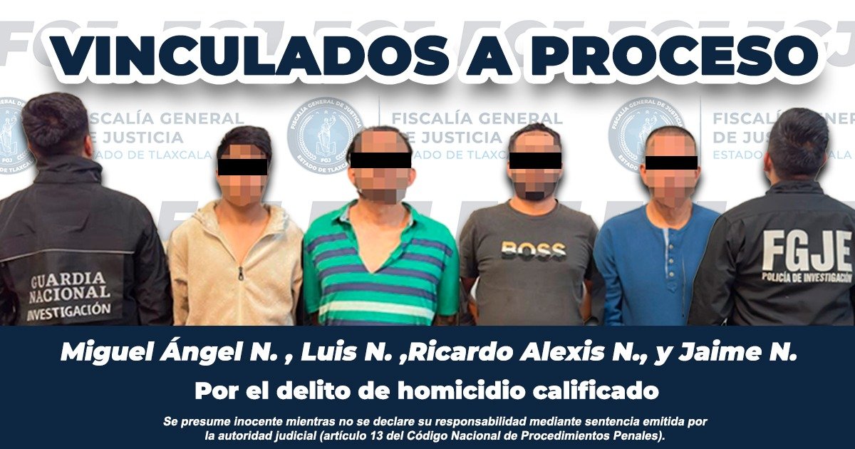 La Fiscalía General de Justicia del Estado (FGJE) obtuvo la vinculación a proceso en contra de Jaime N., Ricardo Alexis N., Luis N., y Miguel Ángel N., por su presunta responsabilidad en el delito de homicidio calificado en agravio de un hombre que se encontraba interno en un anexo en Huamantla.