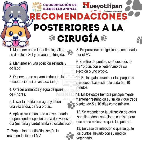 Autoridades municipales emiten recomendaciones post operatorias para garantizar su correcta recuperación.