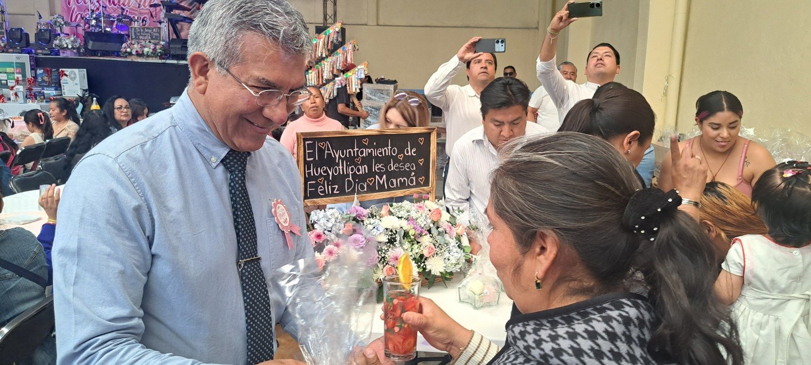 Tlaxcala, Tlax, a 9 de mayo de 2025.- Espectacular fue el homenaje que más de mil mamás de Hueyotlipan vivieron con motivo del “10 de mayo”, donde el alcalde Sostenes Bedolla Espinoza en coordinación con el cabildo, el SMDIF y las diferentes áreas del Ayuntamiento ofrecieron a las galardonadas en la Casa Ejidal, el edil fue el encargado de recibir a las festejadas a quienes les daba su regalo y les deseaba un feliz día y que este era un pequeño homenaje comparado con la grandeza que realizan en sus hogares y que son el pilar de las familias.