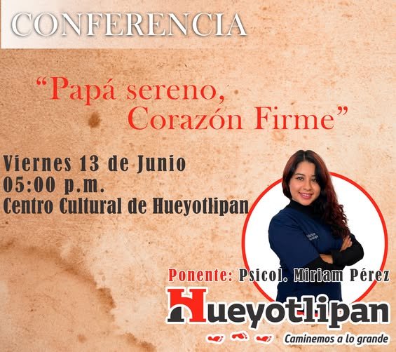 El H. Ayuntamiento de Hueyotlipan, encabezado por el presidente municipal C. Sostenes E. Bedolla Espinoza, en coordinación con la Dirección de Cultura tiene el honor de invitar a toda la población a la conferencia: