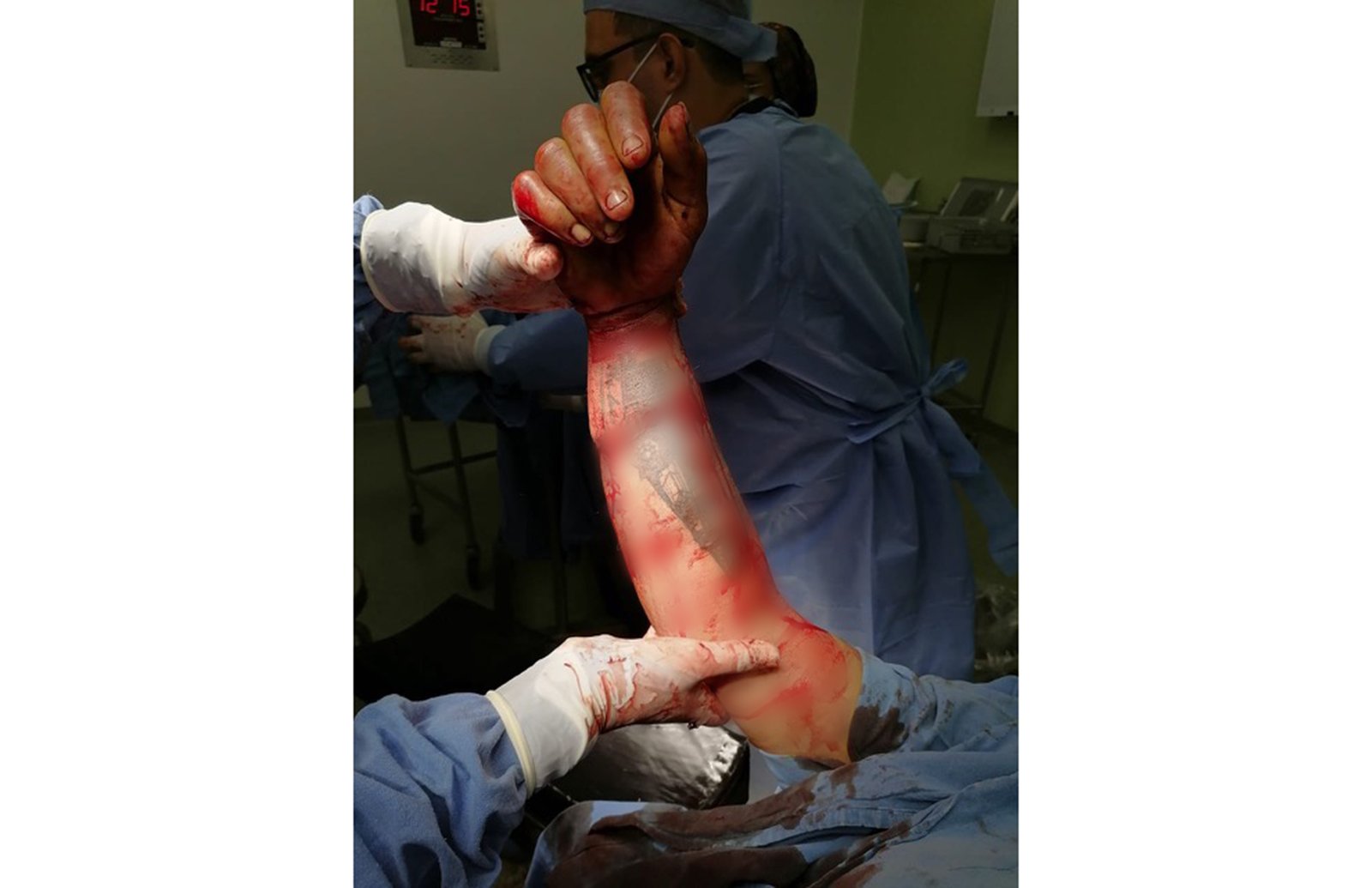 De acuerdo con el cirujano, se repararon las arterias a través de microsuturas; además, se aseguraron de la recuperación de la irrigación sanguínea. Posteriormente, los nervios de la mano y los tendones flexores lesionados se repararon.