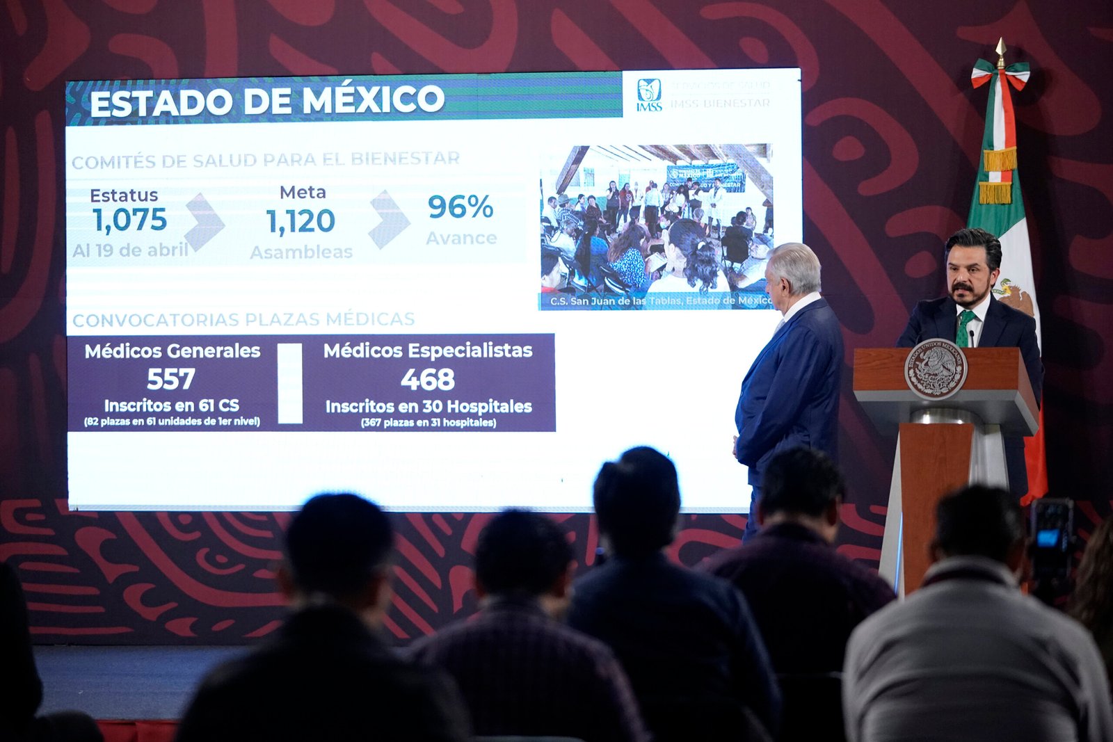 Expuso que en Baja California Sur para 33 vacantes se tienen registrados 172 médicos generales, y médicos especialistas se han inscrito 14 de 12 plazas ofertadas. Para Sinaloa, de 256 vacantes hay interesados 564 médicos generales. En cobertura de médicos especialistas para 12 hospitales se han inscrito 74 de 133 plazas.