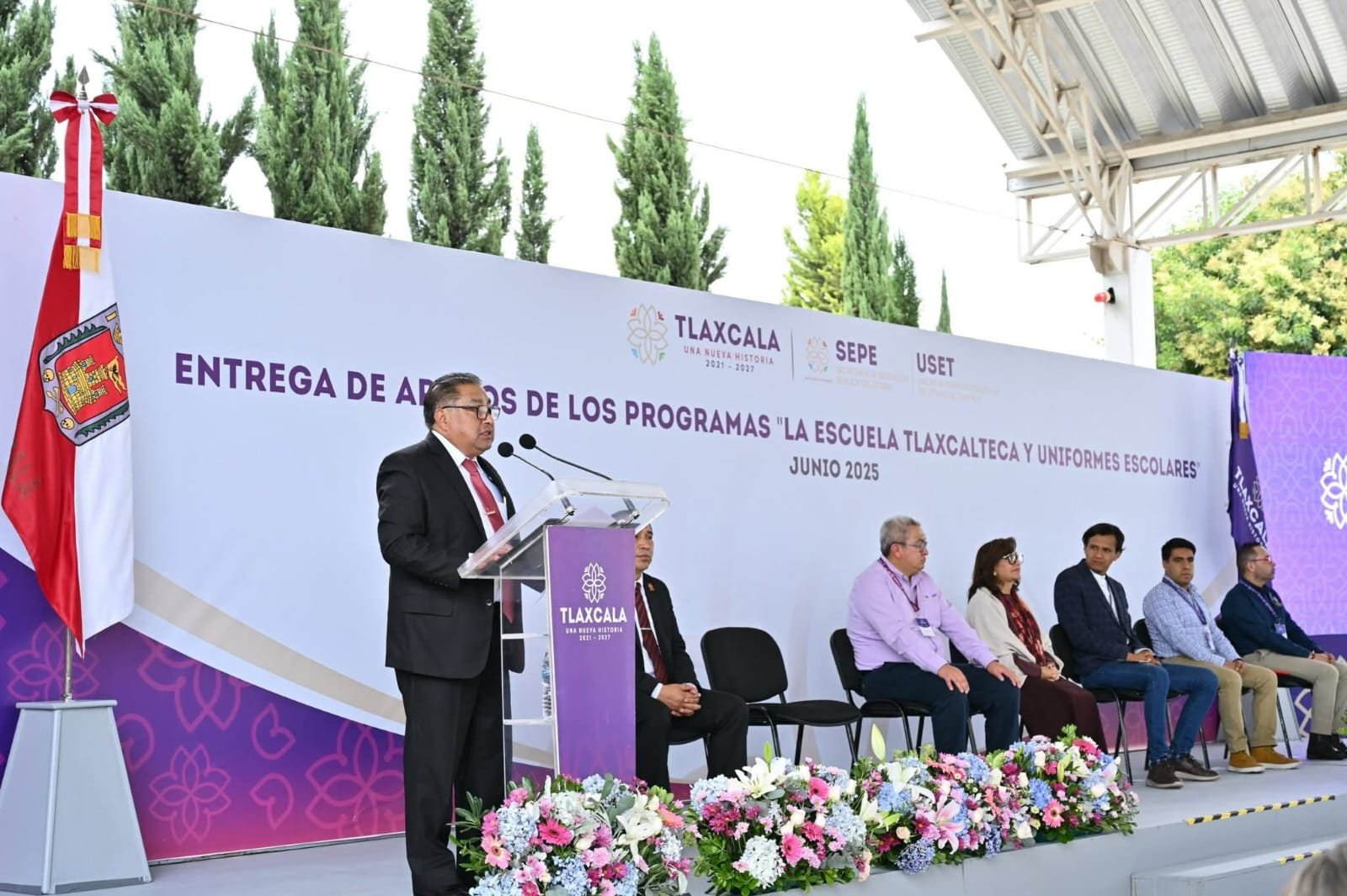 Tlaxcala, Tlax, a 18 de junio de 2025/Redacción/ El presidente municipal de Ixtacuixtla Alberto Hernández Olivares este día recibió a la gobernadora del estado Lorena Cuéllar Cisneros, así al Secretario de Educación Pública Homero Meneses Hernández, por mencionar algunos, quienes entregaron los apoyos del programa “la escuela Tlaxcalteca y uniformes escolares” y donde nuestras escuelas resultaron beneficiadas.