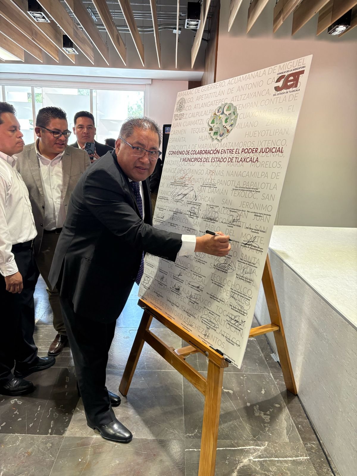 Tlaxcala, Tlax, a 24 marzo 2025/Redacción/ El presidente municipal de Ixtacuixtla Alberto Hernández Olivares, acudió al evento de la “firma de convenio de colaboración entre el poder judicial y los 60 municipios, en el evento se contó con la presencia de la gobernadora del estado Lorena Cuellar Cisneros quien acudió como testigo de honor, también se contó con la presencia de la presidenta del Tribunal Superior de Justicia del estado (TSJE) Anel Bañuelos Meneses, dicha firma es para proteger y garantizar los derechos humanos de las personas más vulnerables.