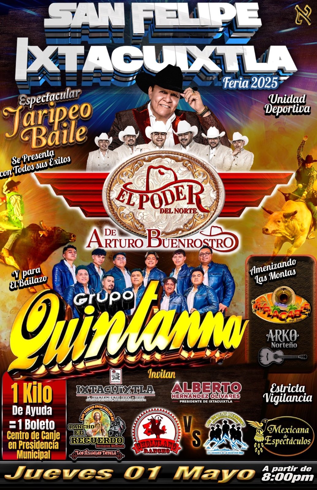 El gran Jaripeo-Baile que se realizará en la apertura de esta festividad el 1 de mayo, dará inicio a las 8:00 pm en la Unidad Deportiva de esta cabecera municipal, será un espectáculo lleno de ritmo, ambiente familiar y solidaridad, con la participación especial de: