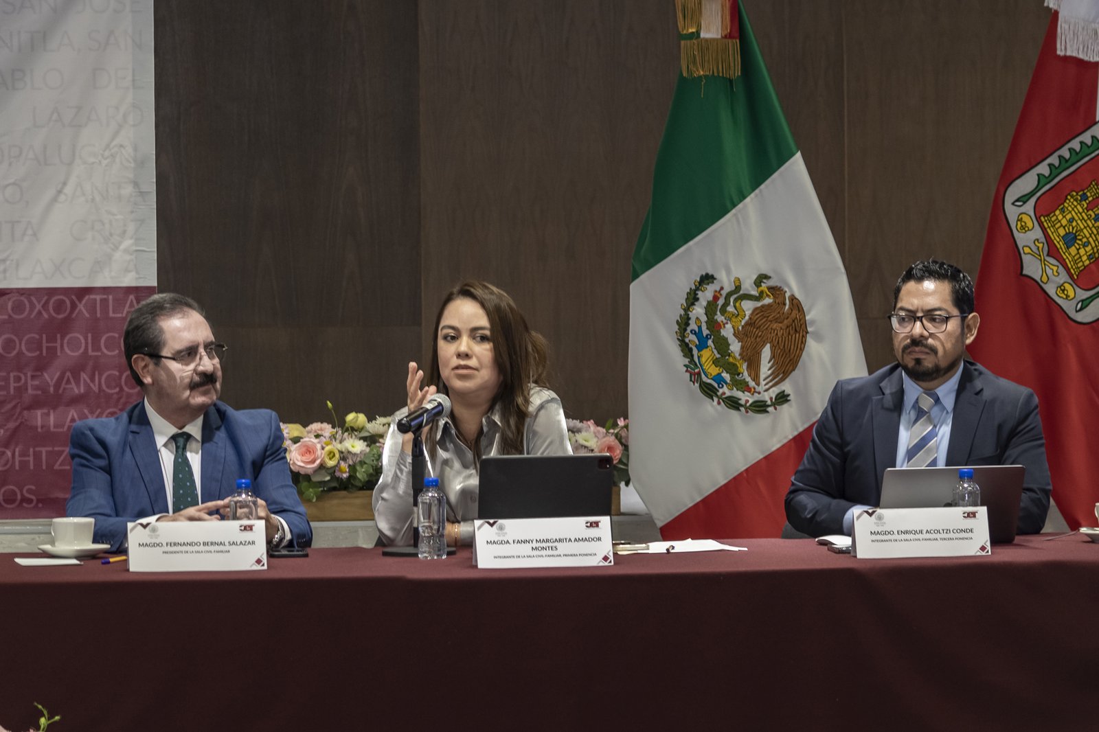 La magistrada titular de la Primera Ponencia de la Sala Civil-Familiar del Tribunal Superior de Justicia en el Estado (TSJE), Fanny Margarita Amador Montes, planteó a las presidentas y presidentes municipales trabajar de forma conjunta con el Poder Judicial de Tlaxcala para apostarle al uso de la justicia alternativa para atender controversias civiles, familiares, vecinales u otro tipo que, normalmente, suelen crecer y convertirse en problemáticas severas tanto para la autoridad municipal como la jurisdiccional.