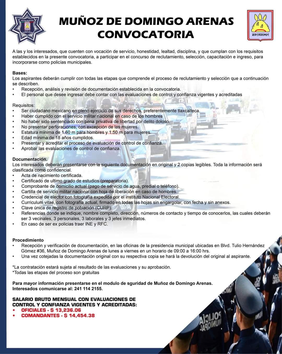 Tlaxcala, Tlax, a 17 de enero de 2024/Redacción/ El gobierno municipal de Muñoz de Domingo Arenas que encabeza el alcalde Héctor Prisco Fernández, en coordinación con el área de seguridad pública municipal, abren convocatoria para incluir a hombres y mujeres a el área laboral de la corporación policiaca, en su mensaje el edil señalo el propósito de fortalecer la seguridad pública en el en el municipio, y están dirigidos al plan estratégicos en materia de “seguridad pública”, para redoblar el trabajo y optimizar el servicio operativo para la prevención de delitos.