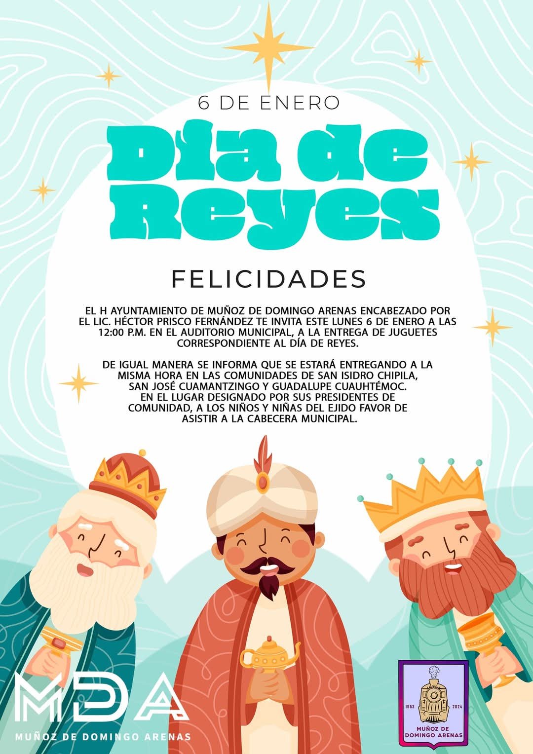 Tlaxcala, Tlax, 3 de enero de 2025/Redacción/ El presidente municipal de Muñoz de Domingo Arenas, Héctor Prisco Fernández dio a conocer a través de diferentes plataformas y este medio digital HN noticias Tlaxcala, la llegada de Melchor, Gaspar y Baltazar al municipio y será este lunes 6 de enero a partir de las 12:00 horas y será en el auditorio municipal donde las niñas y los niños nuevamente estarán con ellos, en su mensaje el edil señalo en esta ocasión también llegaran a las comunidades para que ningún niño se quede sin recibir su juguete.