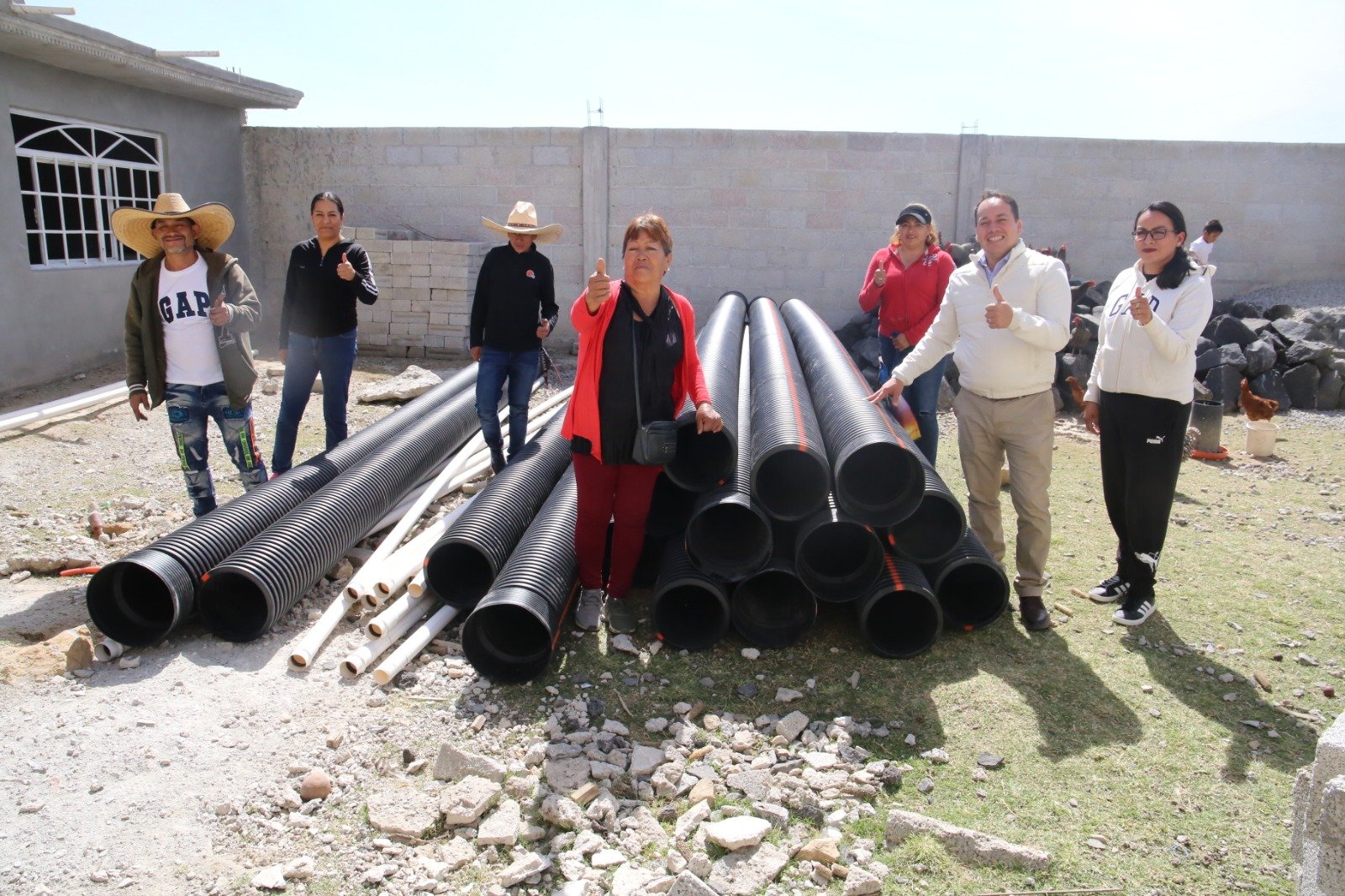 Tlaxcala, Tlax, a 8 de febrero de 2024/ JL Hertewing / Abatir el rezago social en cuanto a obras de servicios básicos solo se puede hacer con obras y es lo que estamos haciendo en las 13 comunidades y 4 colonias de Nativitas, ahora fue en la privada canal San Ignacio de la comunidad de San Miguel Xochitecatitla, que con aportación de los vecinos beneficiarios tendrán dos servicios básicos como son el drenaje sanitario y una red de agua potable, así lo dijo el presidente municipal Carlos García Sampedro al entregar 34 tubos para ambas obras.