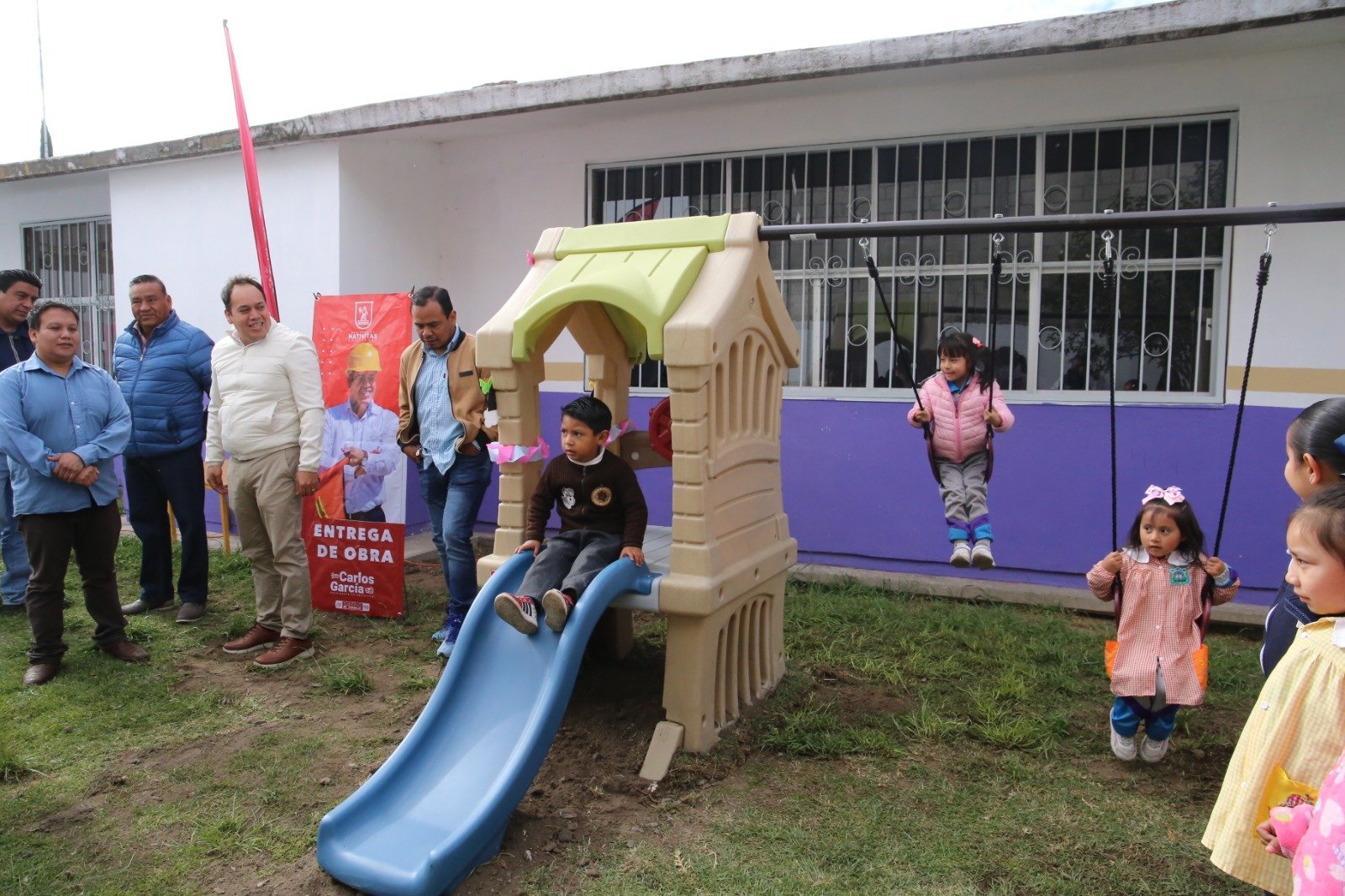 Tlaxcala, Tlax, a 30 de enero de 2024/ JL Hertewing / uno de los compromisos del presidente municipal de Nativitas Carlos García Sampedro, con la niñez del jardín de niños “Pedro María Anaya” de Santo Tomas la Concordia, era de dotar de un paquete de juegos infantiles a los más de 130 alumnos de dicha institución educativa, en su mensaje el edil dijo sabemos que unos juegos infantiles vienen a impulsar el desarrollo y también impulsan la sana convivencia.