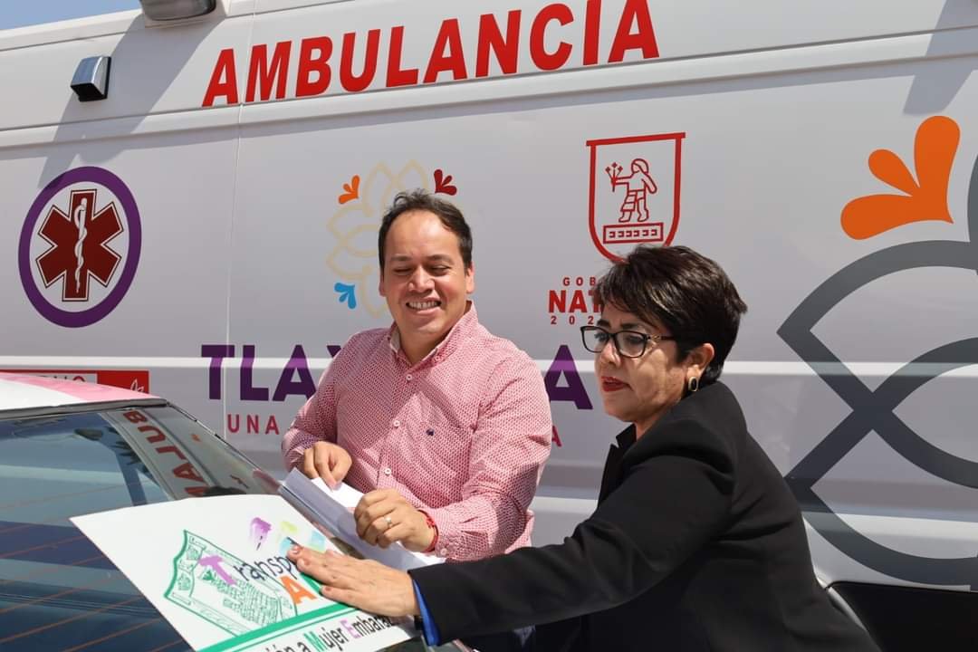En la explanada de la presidencia municipal autoridades del sector salud y del Ayuntamiento de Nativitas realizaron la firma de convenio y colocaron las calcomanías a la ambulancia de protección civil y a la patrulla de genero de seguridad publica del municipio.
