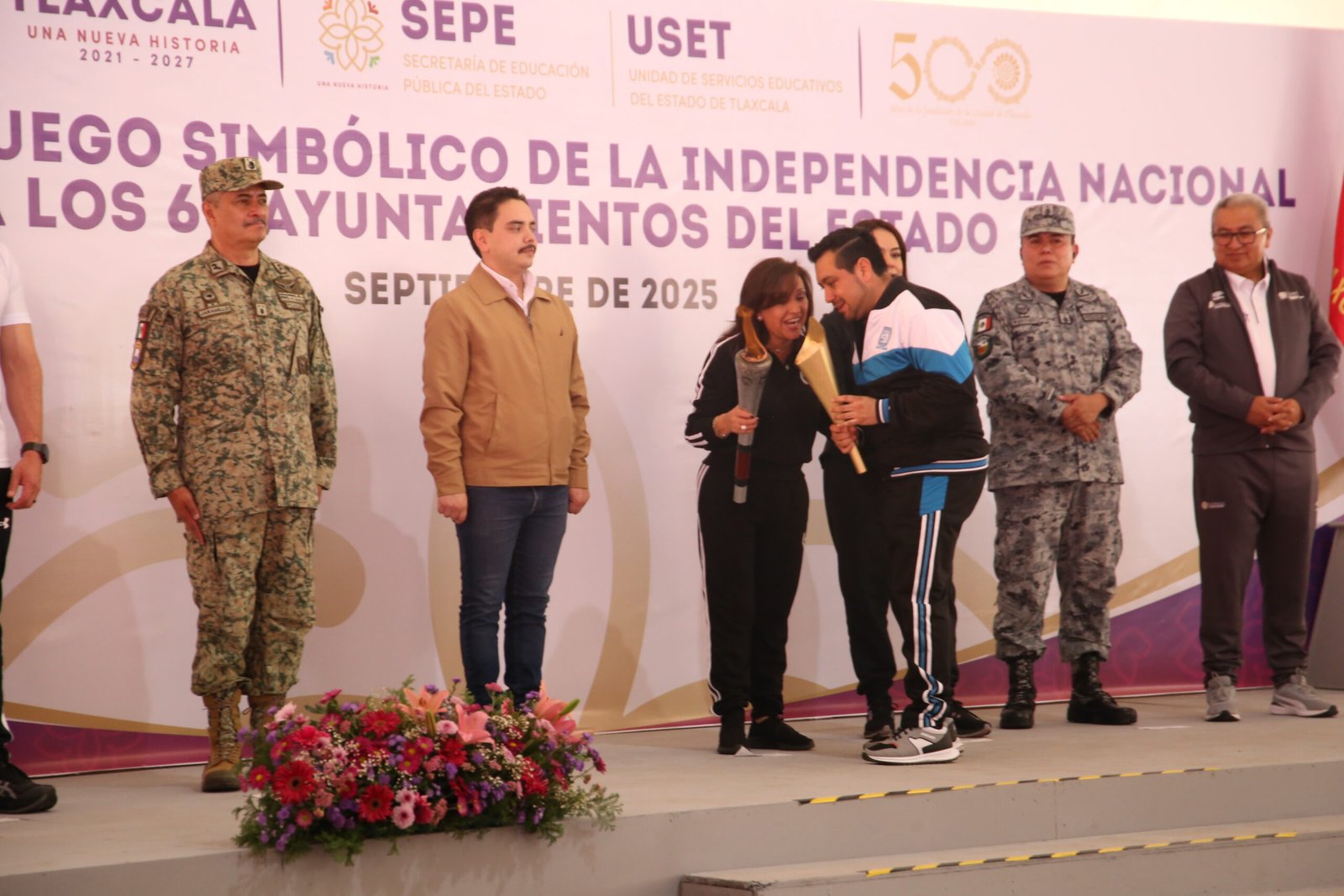Tlaxcala, Tlax, a 15 de septiembre de 2025/Redacción/ En el marco del CCXV Aniversario de la Independencia de México, el gobierno municipal de Sanctórum de Lázaro Cárdenas que encabeza el alcalde Iván Alejandro Alemán Juárez, asistió al domo blanco de la capital del estado donde la gobernadora del estado Lorena Cuéllar Cisneros, entregó el fuego simbólico de Independencia Nacional a los 60 Ayuntamientos del estado, el cual representa la memoria de los actos heroicos durante la lucha para consolidar a México como una nación independiente.