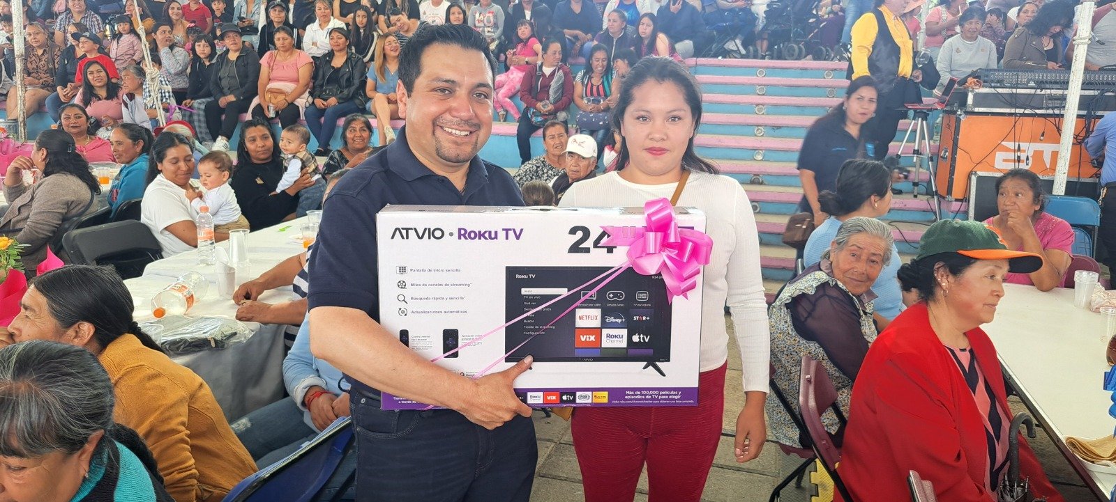 Cada una al llegar le entregaron un bonito regalo, además participaron en la rifa de cientos de regalos entre muebles para el hogar y electrodomésticos: Iván Alejandro Alemán Juárez, alcalde.